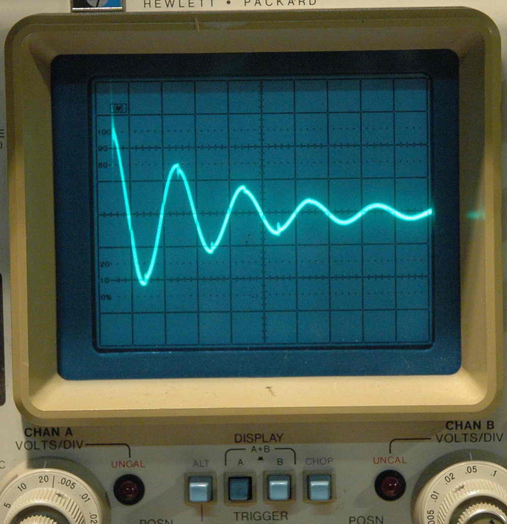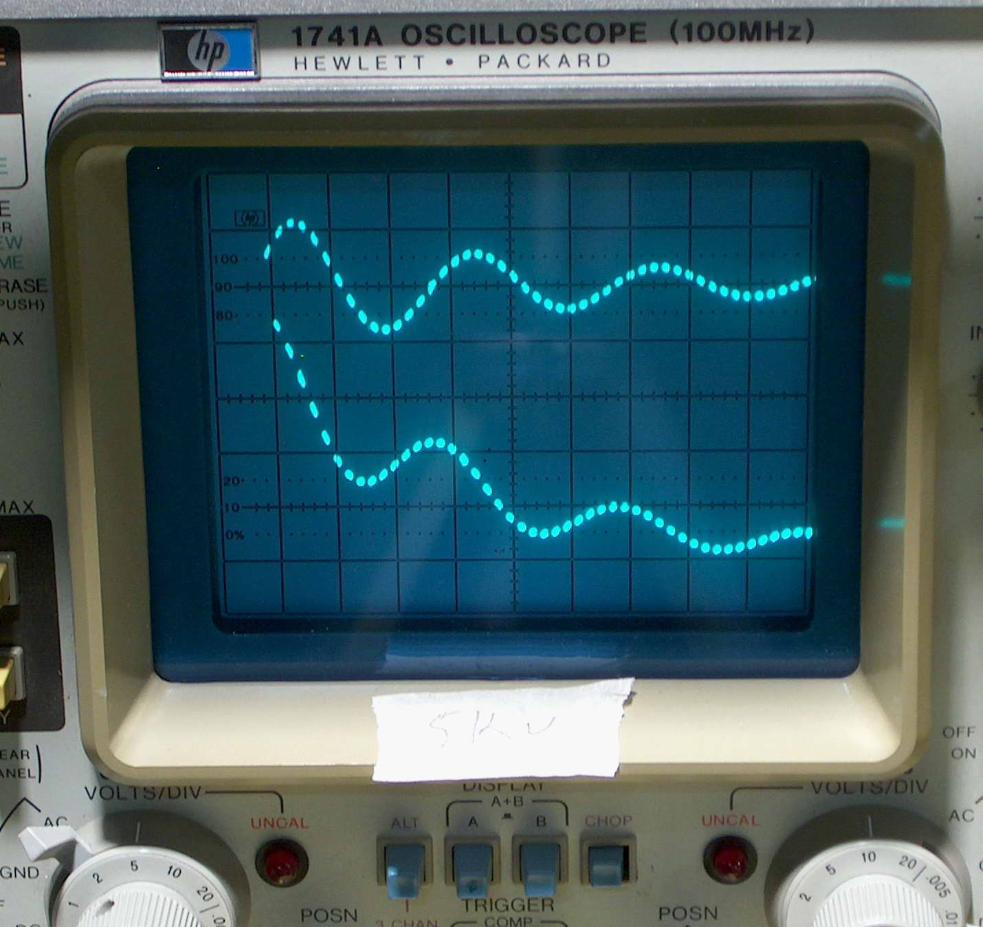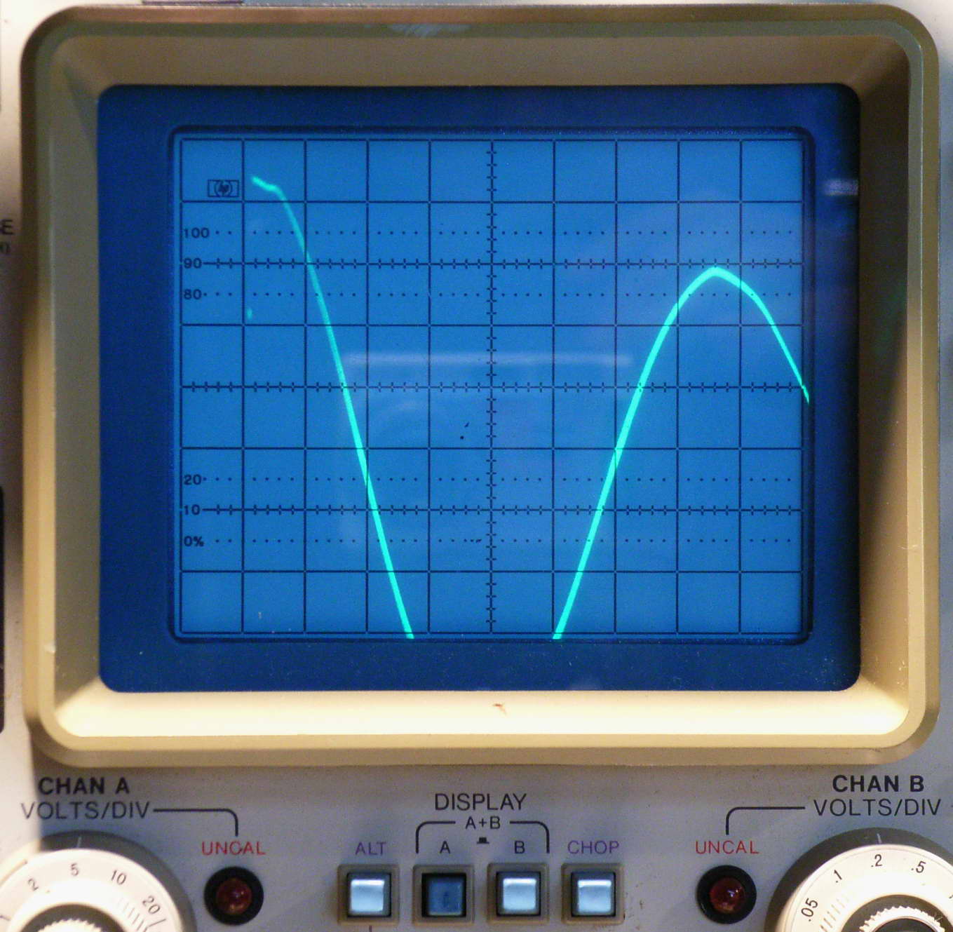 5 V/div. This is without the SCR and shows 80 % or more voltage reversal