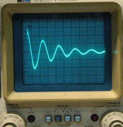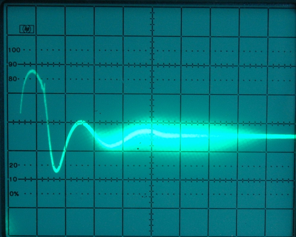 curve on the CRO shows the current ring down from a peak 45 kA with 65 %