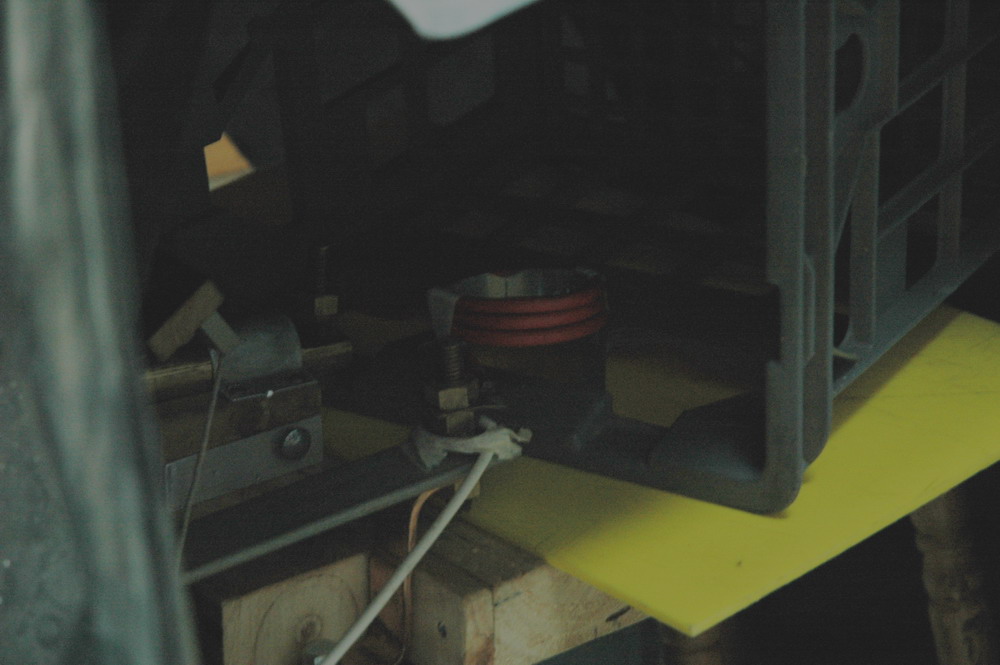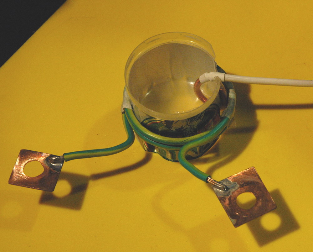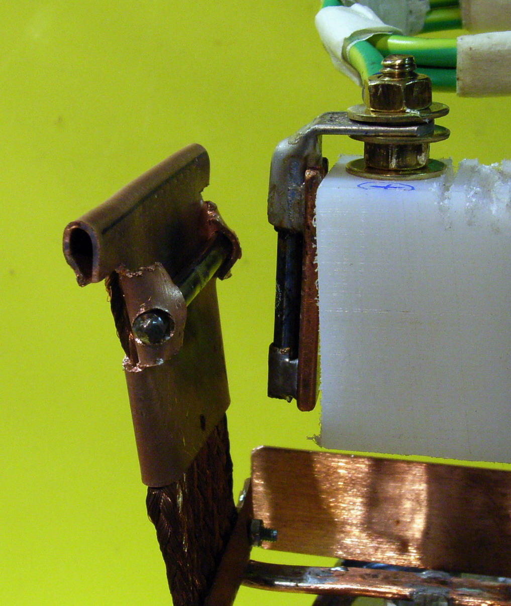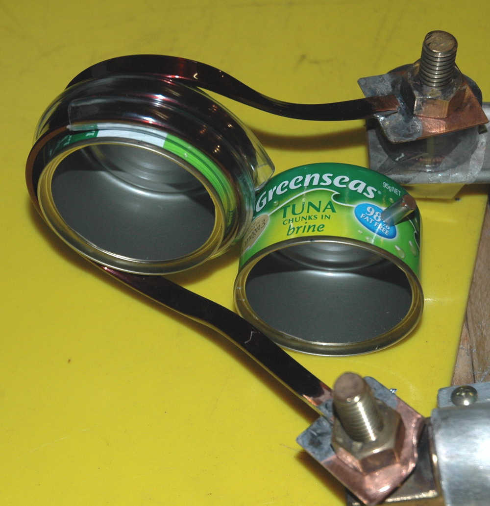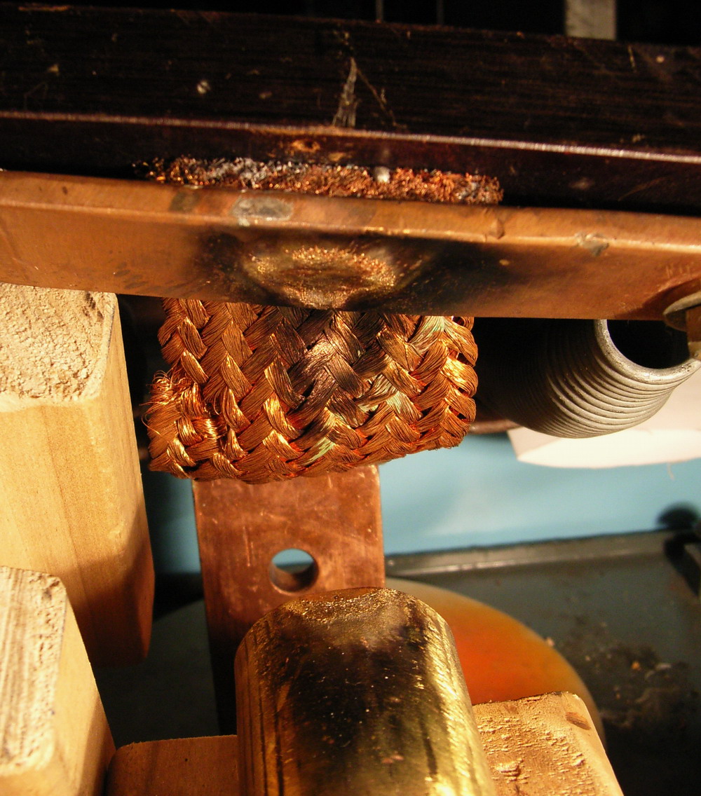 Spring force is from two bedsprings. Copper braid (2 inch) connects to a