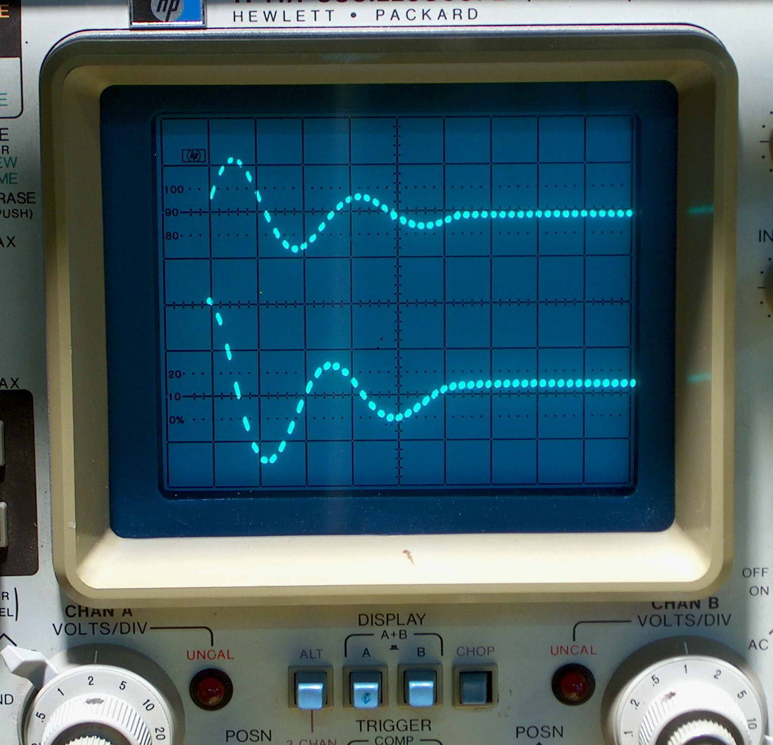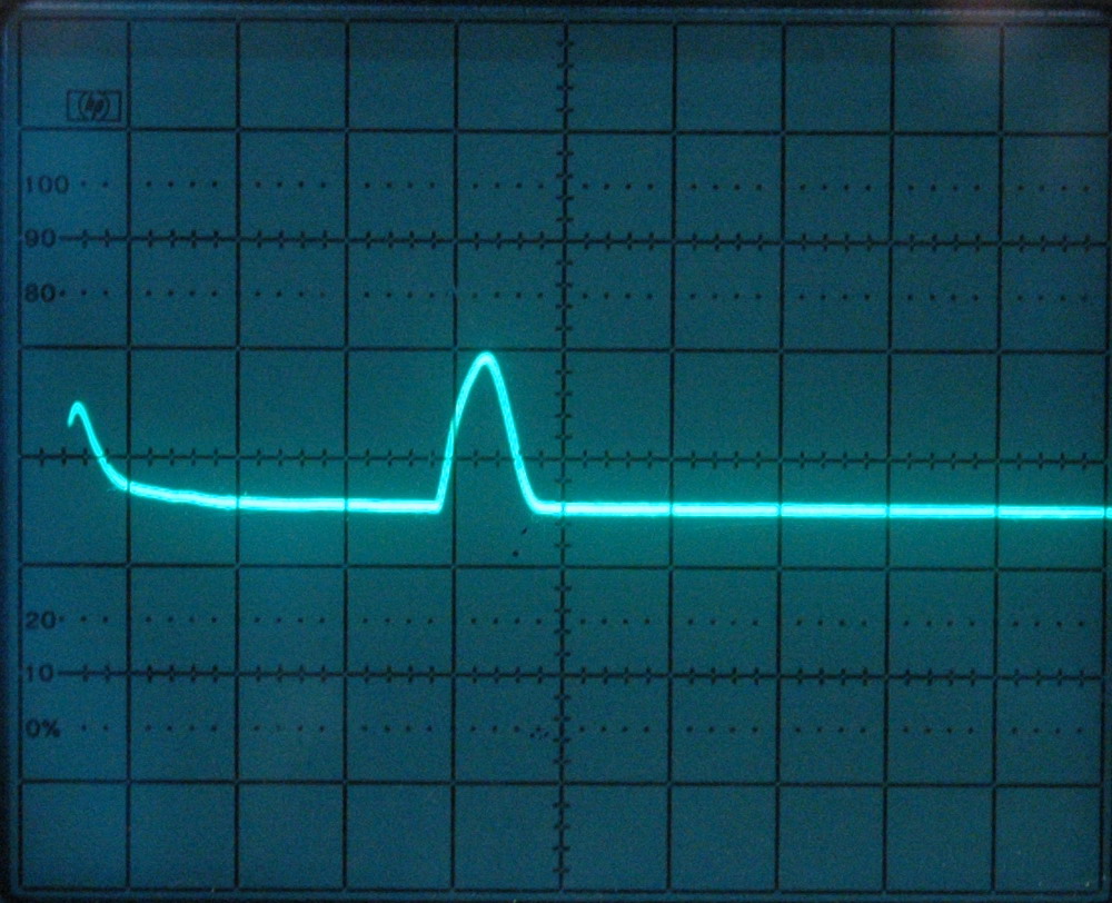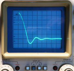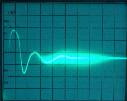 Now the CRO shot (20 kA/div and 50 us/div) above is interesting. The current