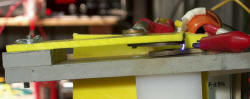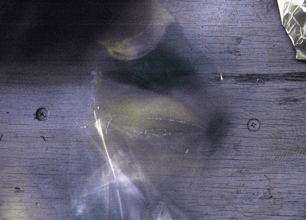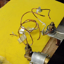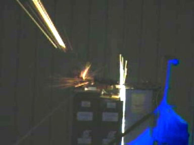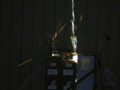 showing rows of tiny blue sparks (roughly in line with the two wood screws