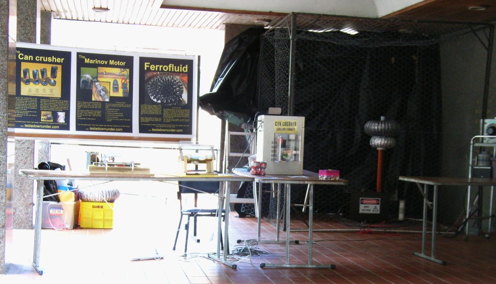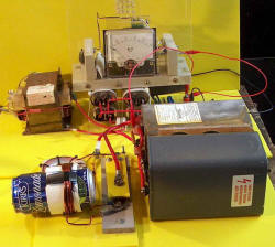 triboelectric generation (think van der Graaff generator). This can crusher has now gone to the Physics Dept at the Uni of Western Australia. For details of the upgrade see the public display section