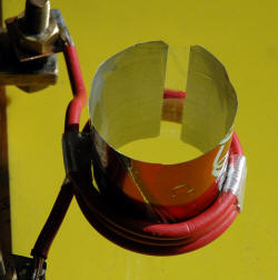 WITHIN the can 2005. Left photo shows a 2 inch can section braced with plastic to prevent crushing and the Rogowski coil was placed around the section. Right photo shows the Rogowski coil around the 3 turns of the crushing coil.