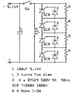 (powerpoint - little info) http://www.powerlabs.org/pssecc.htm Sam Barros. Electrolytics give poor performance for 3 kJ http://www.altair.org/crusher.html Altair 100 kV but only to 400 J http://www.amasci.com/amateur/capexpt.html Bill Beaty's cap bank http://members.tm.net/lapointe/Main.html Bobs HV 1 kJ 40 kV http://www.redremote.co.uk/electricstuff/destructotron.html Mikes Electric stuff Excellent article http://www.teslamania.com/ Bert Hickmans Excellent stuff http://en.wikipedia.org/wiki/Pinch_%28plasma_physics%29
