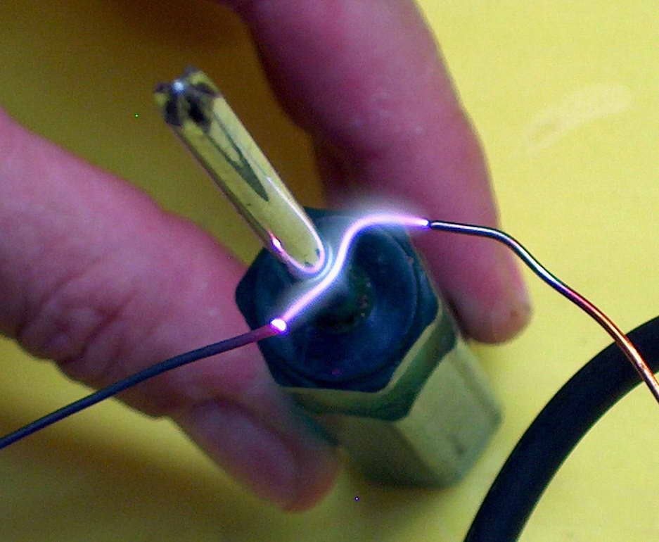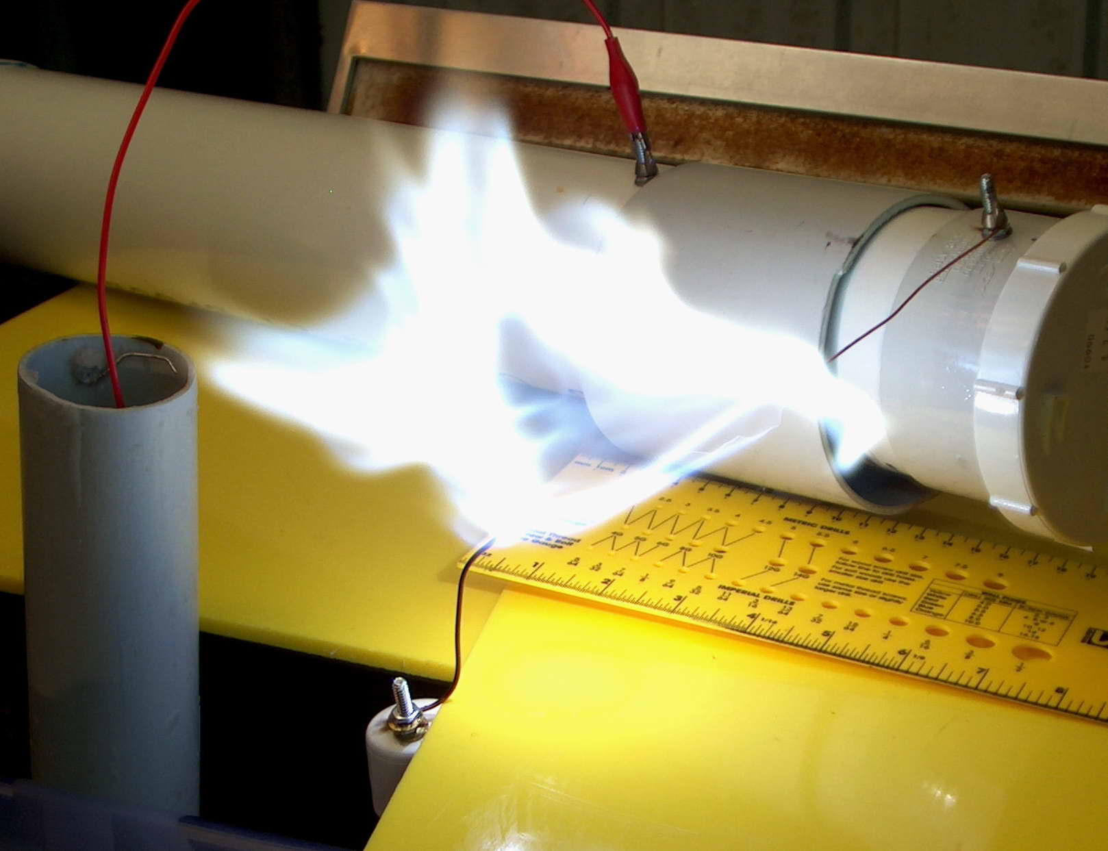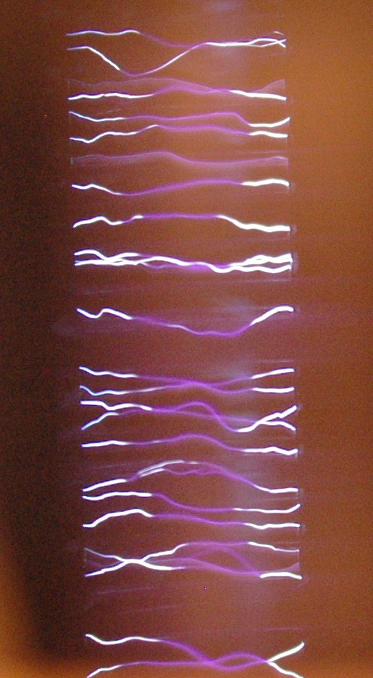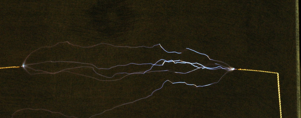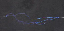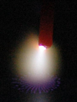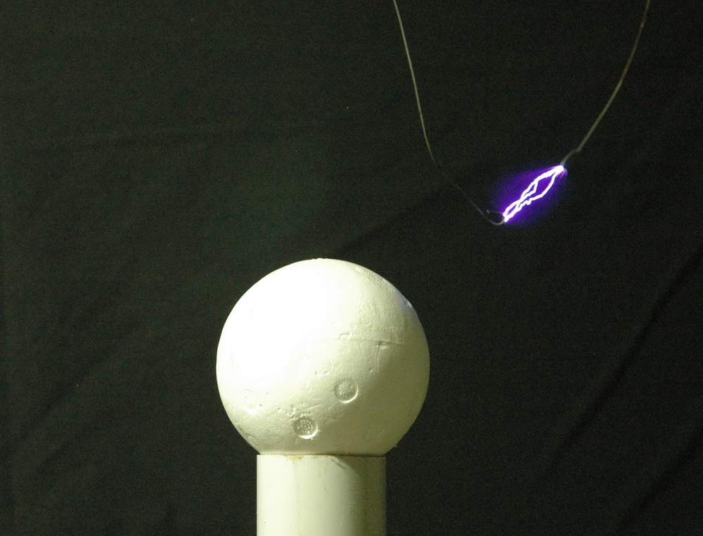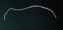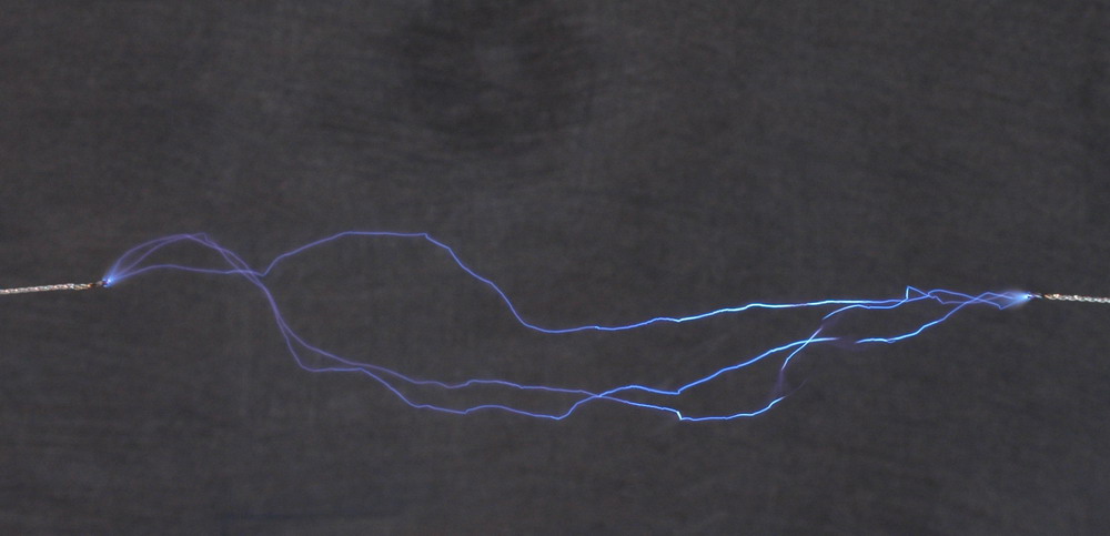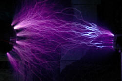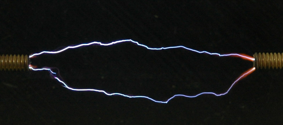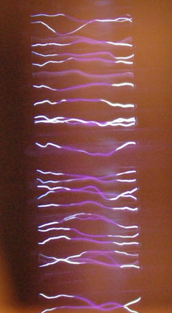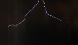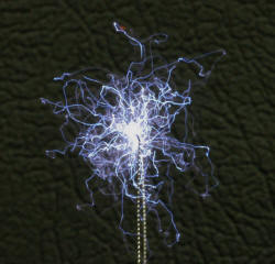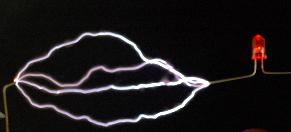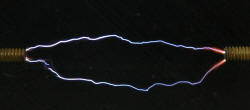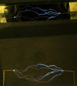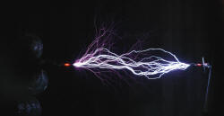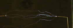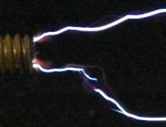 Above shows the bright area in the spark seen in a Tesla coil discharge.