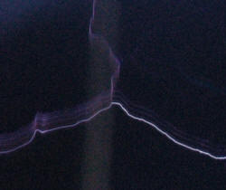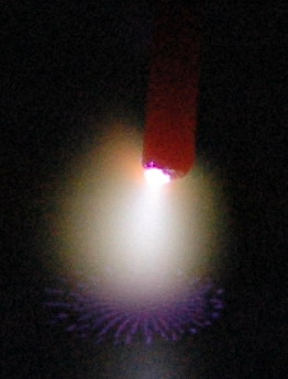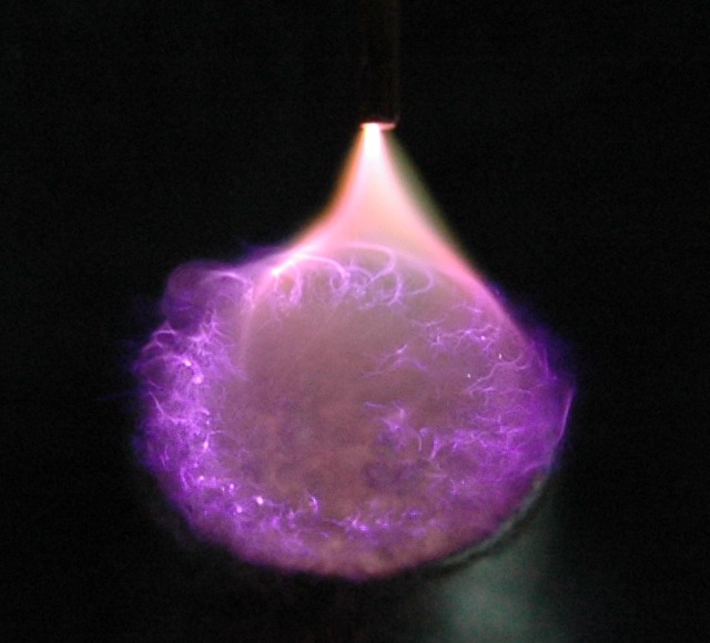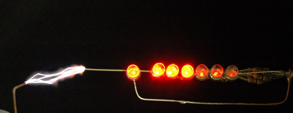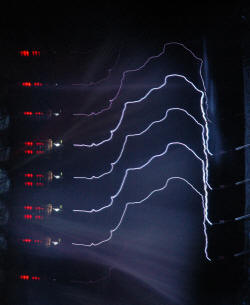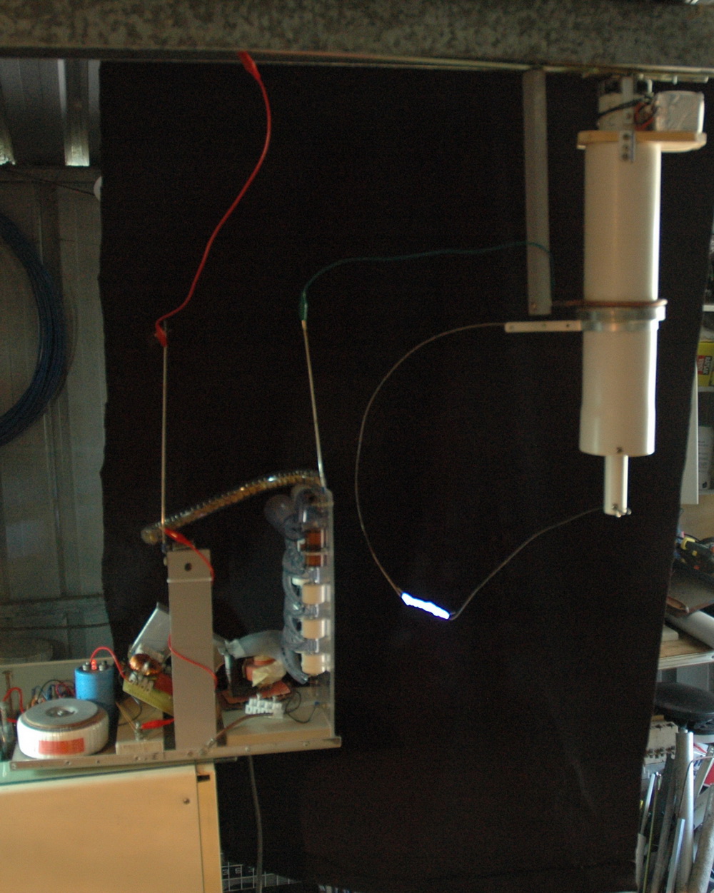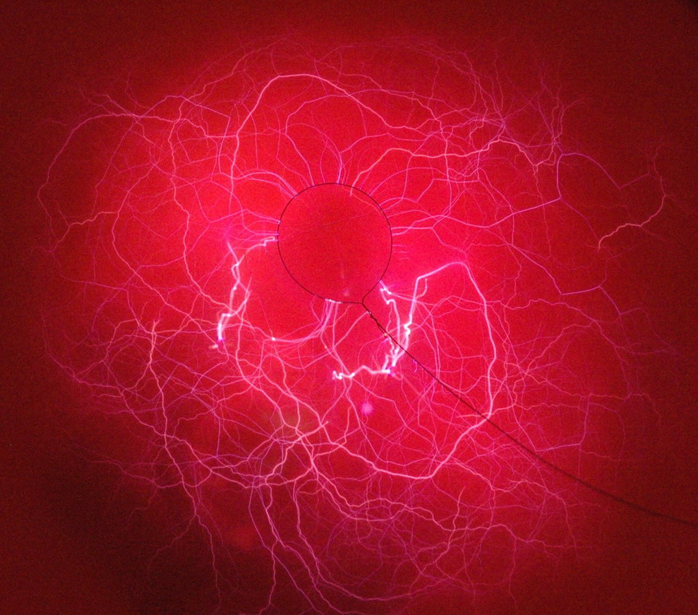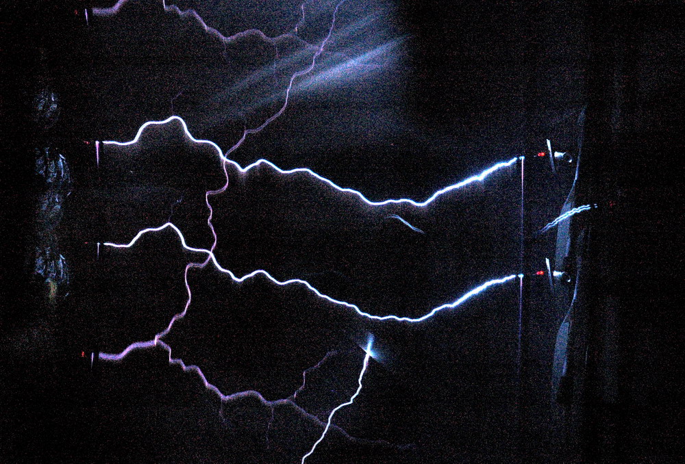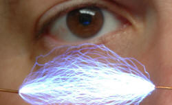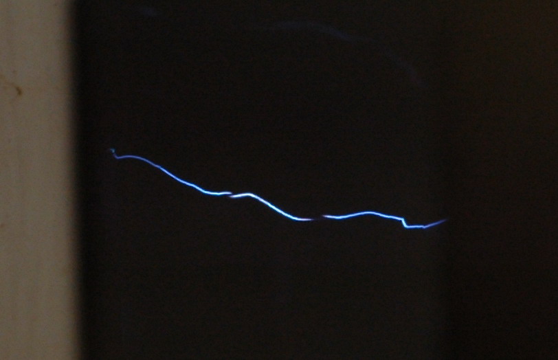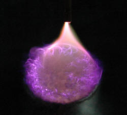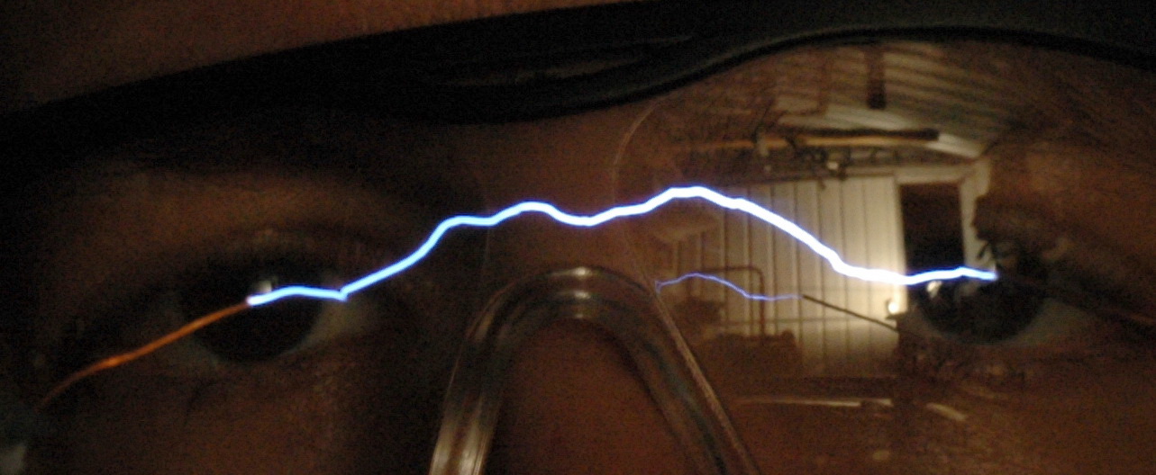 Above shows the bright area in the spark seen in a Tesla coil discharge.