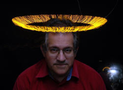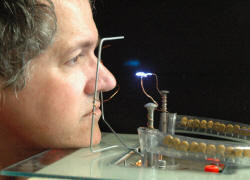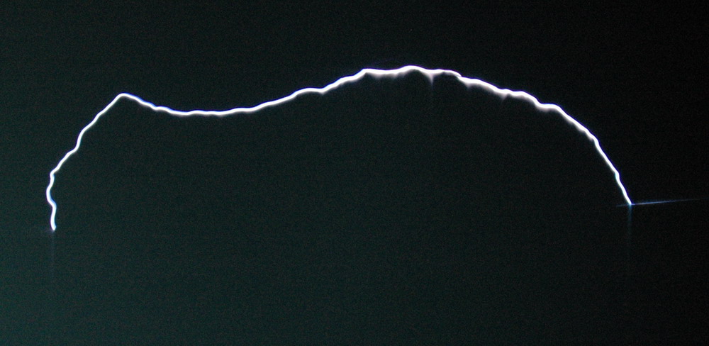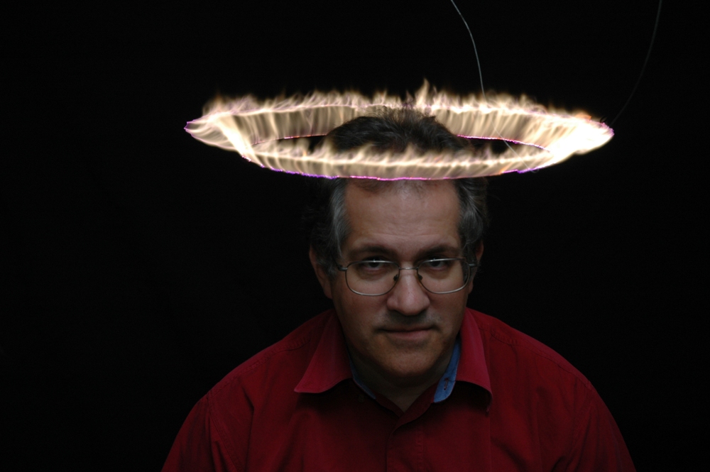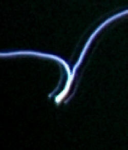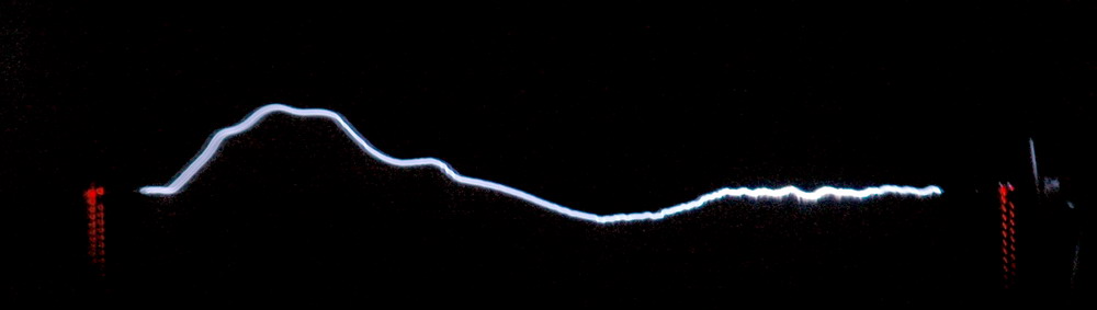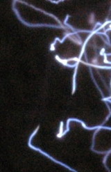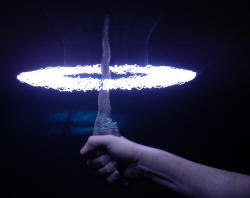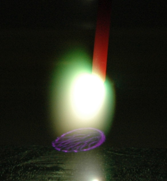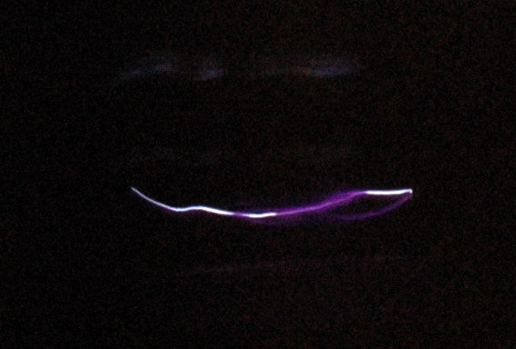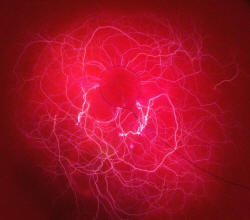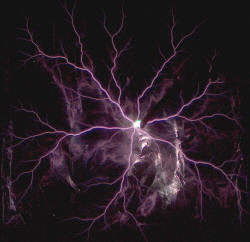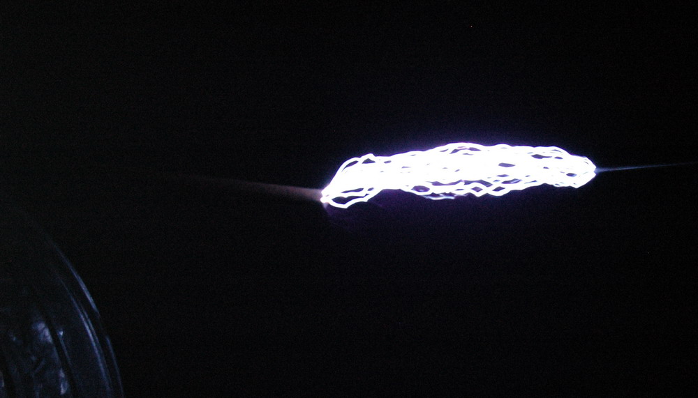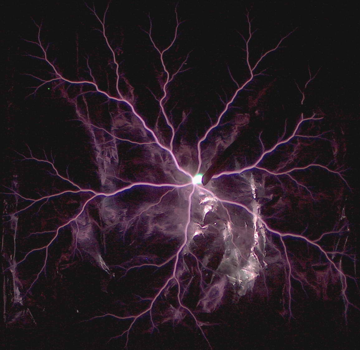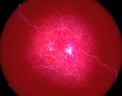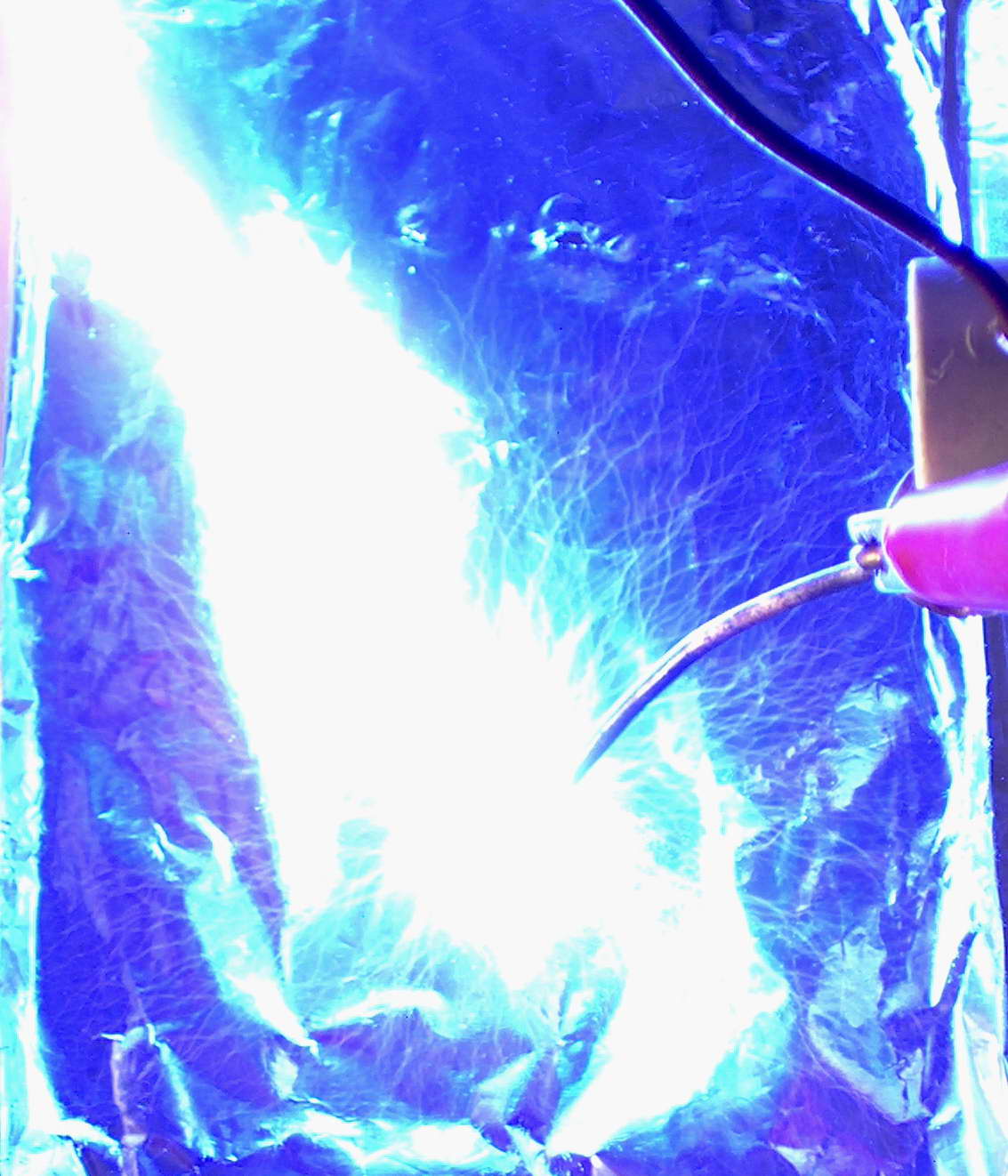 Above shows the bright area in the spark seen in a Tesla coil discharge.