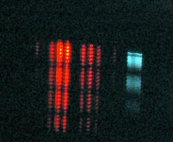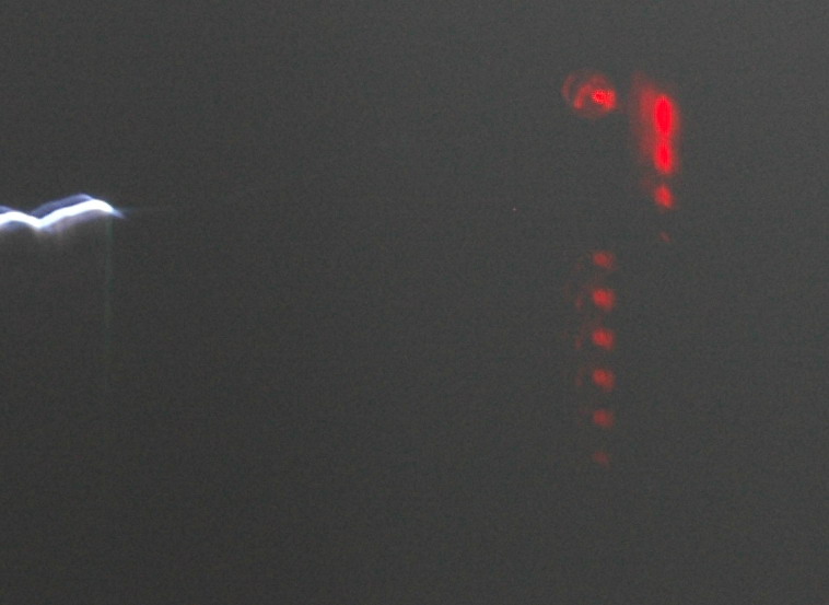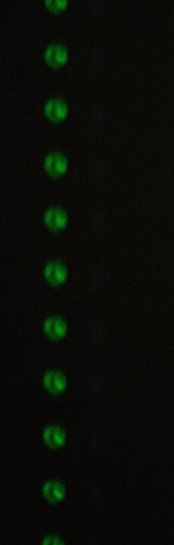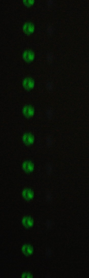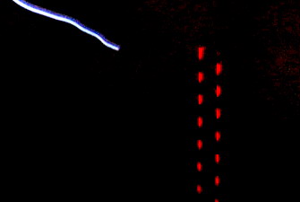 shows a view of a LED being flashed at 100 kHz hence the distance between