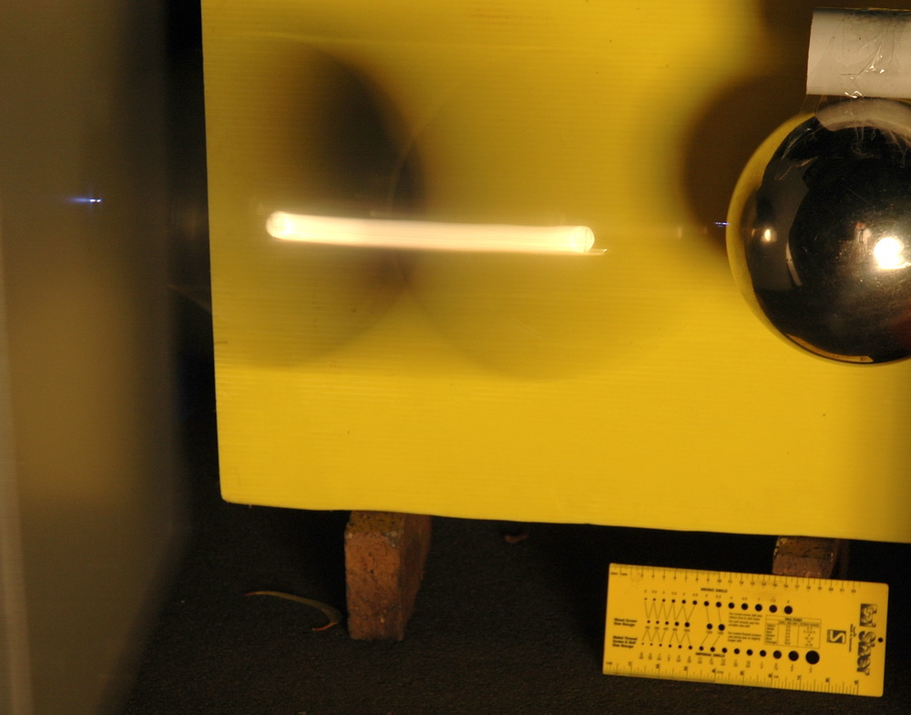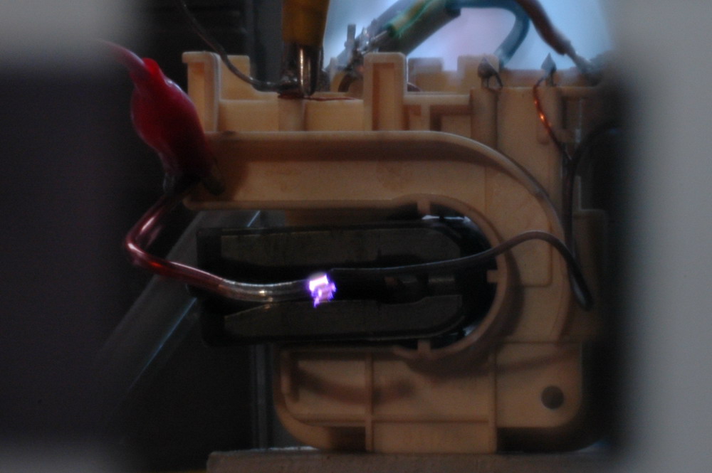 inverter MOT transformer to give perhaps 2 kV at 15 kHz. It wasn't bright