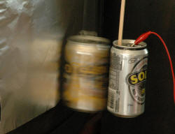 the sparks by putting an old tin on top. The gap is only about 2 cm to all