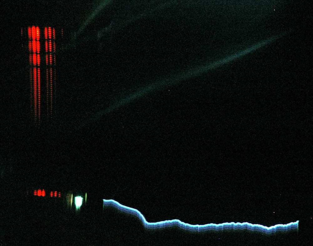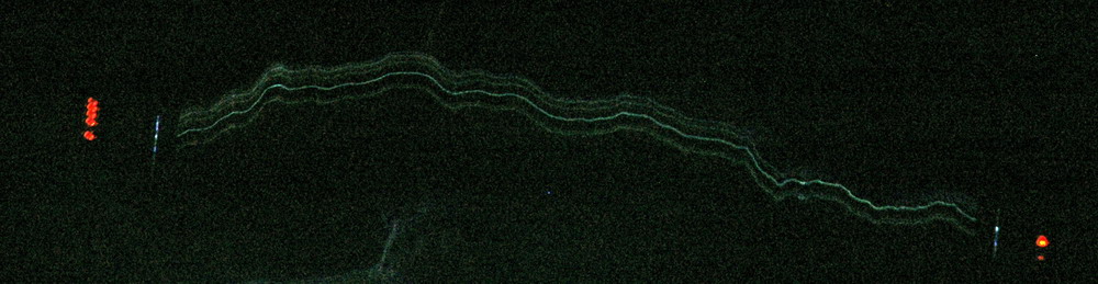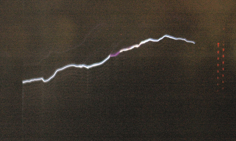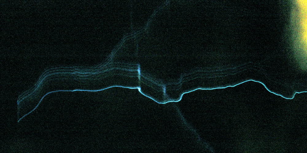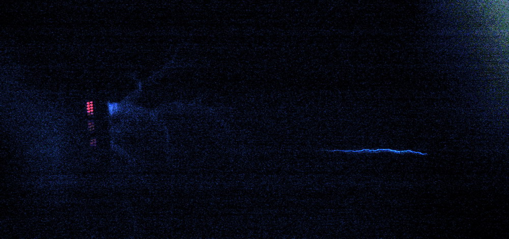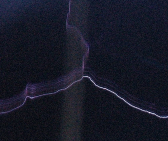 shows a spark (bright horizontal) with ring down, superimposed on a diagonal streamer