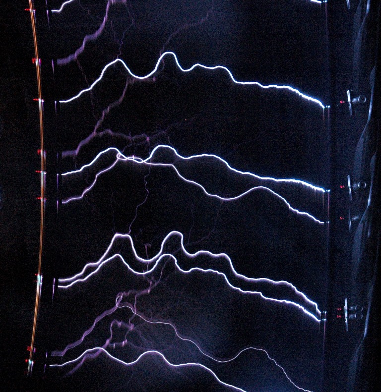 channel. Spacing between sparks is about 1.5 ms which corresponds to