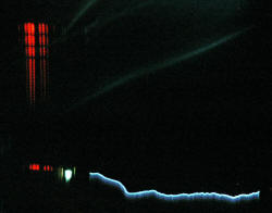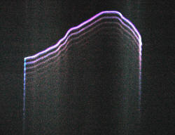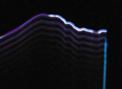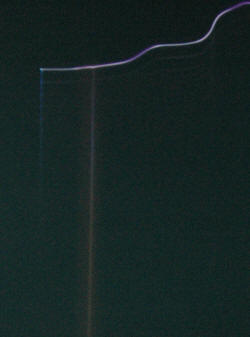 vertical scale is 40 us. (just over 100 ns/pixel). The right photo