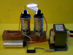 junk coil running on half of a 12 kV 30 mA NST. It has a few ceramic