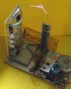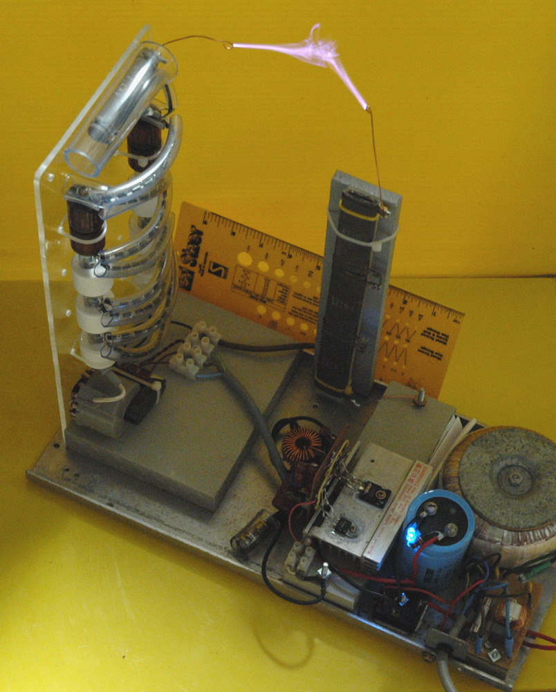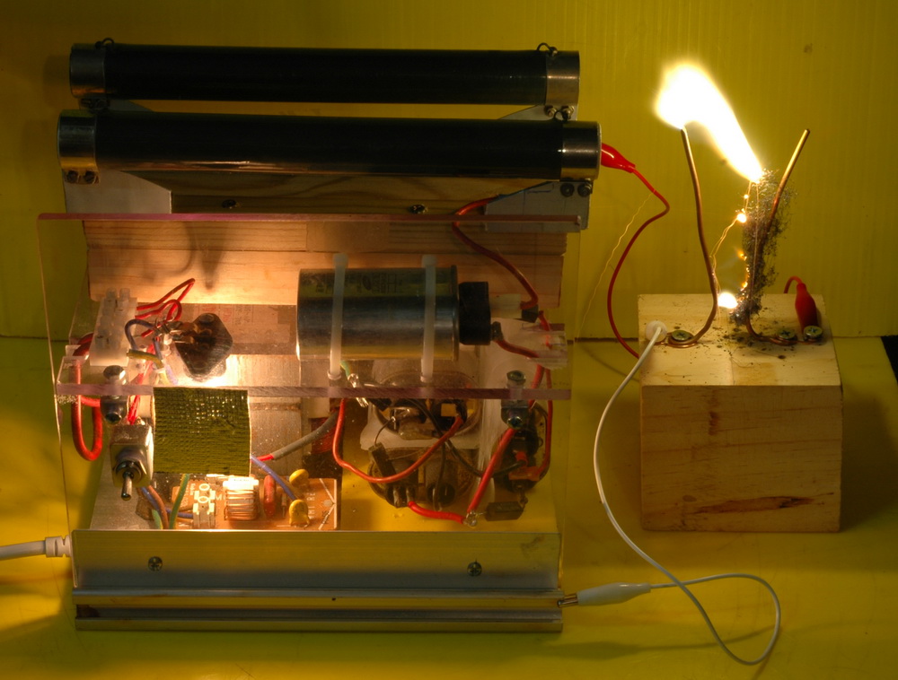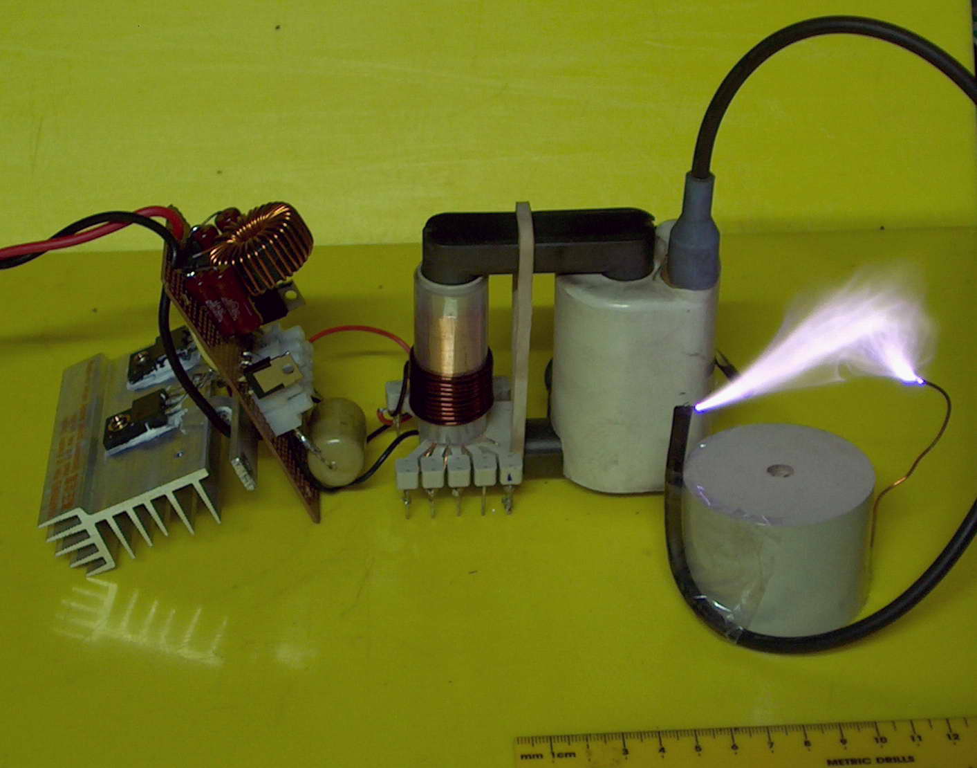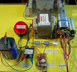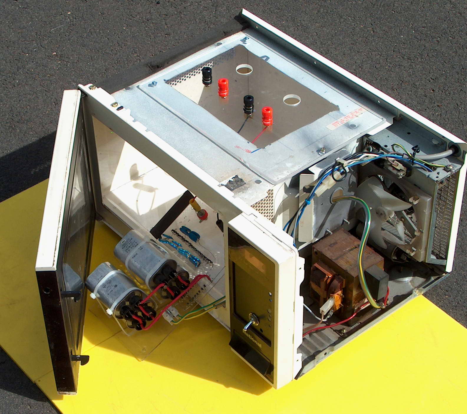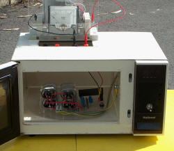 (Microwave oven transformer) 2004 In good Tesla Downunder tradition, total cost is almost nothing, being made almost entirely from scrap microwave ovens, old ignition coils and only a handful of new parts such as the SIDAC's.