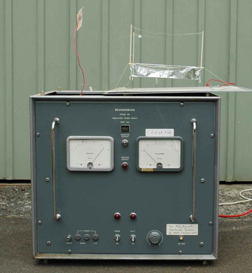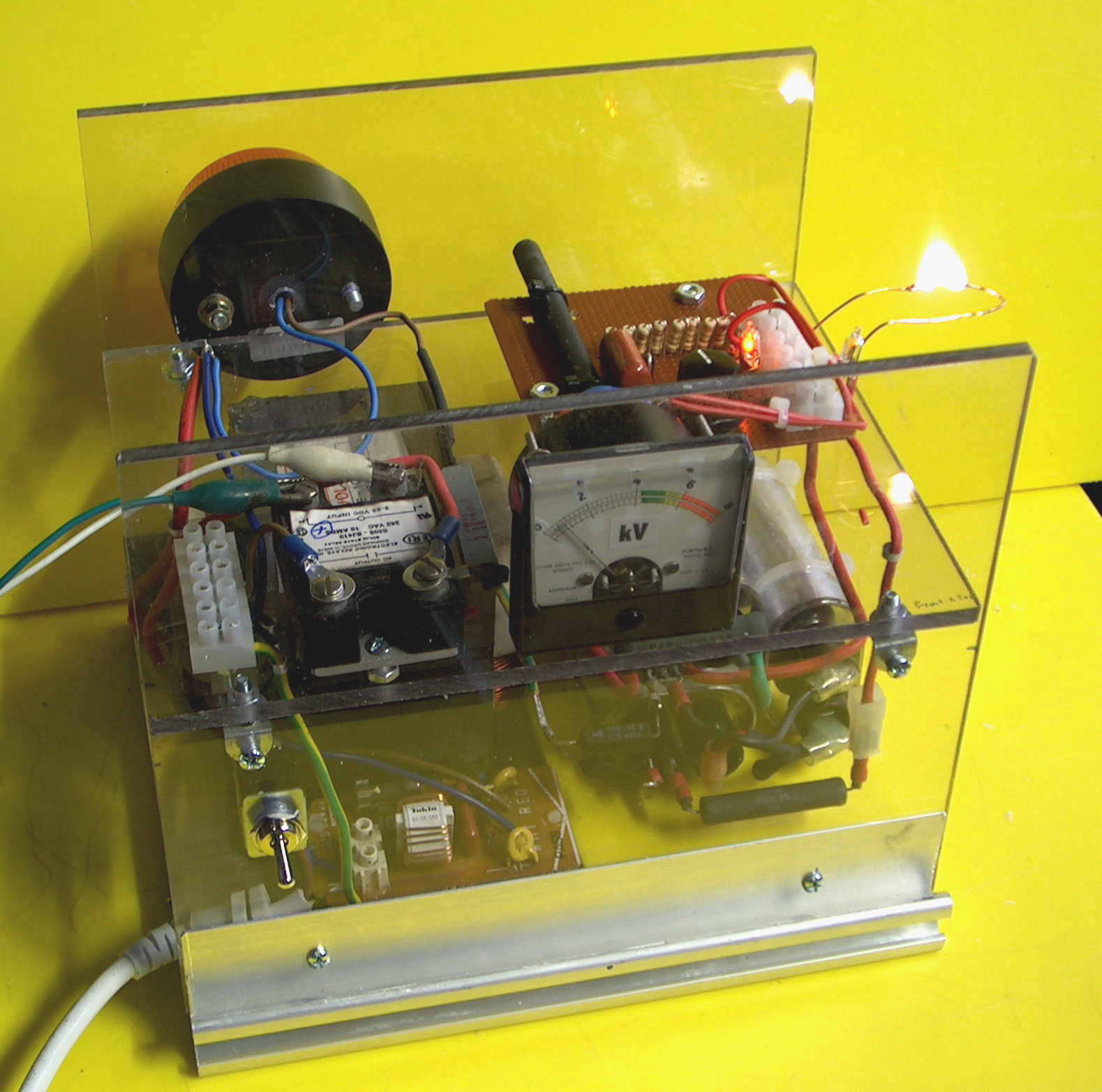 The left photo shows the larger supply outputs 5 kV DC, 3.8 kV AC and