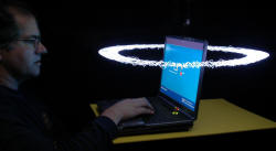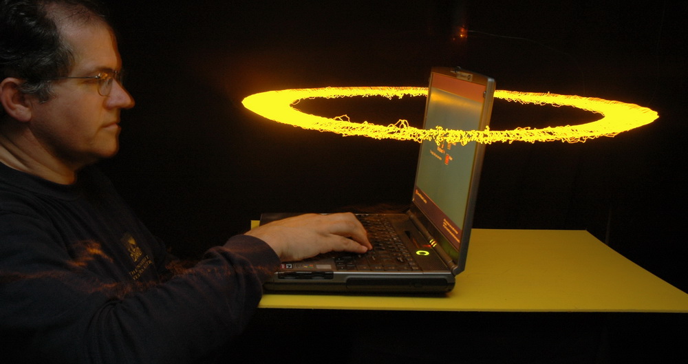 The photo above shows a golden ring of 60,000 volt sparks around my laptop. I reckon it looks like one of those rings of power around a World of Warcraft character protecting it. From what? Viruses of course. Hence "High voltage antivirus" - for PC or Mac.