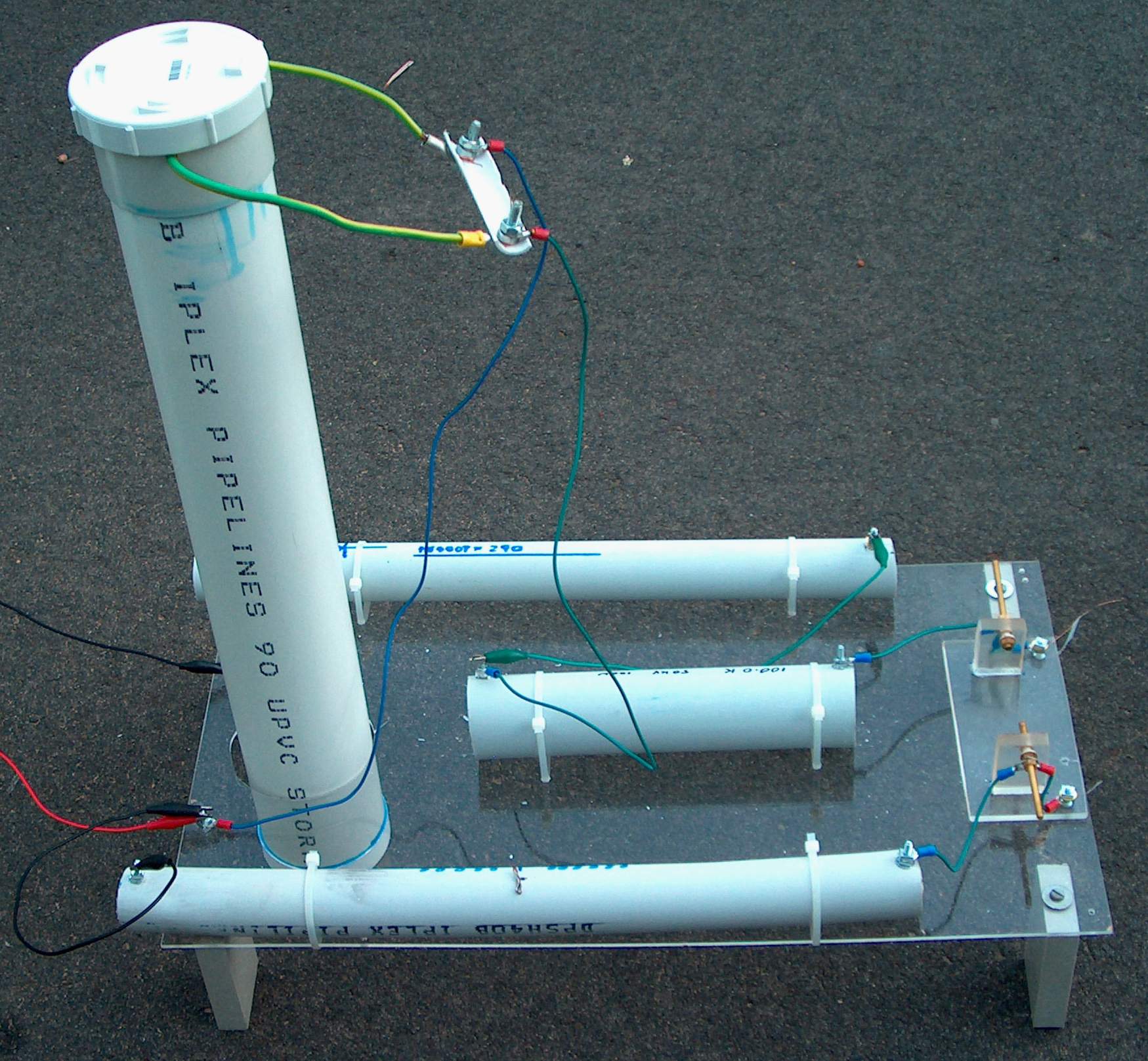 The diode is composed of 290 x 1N4007's in a PVC pipe about 15 inches (40