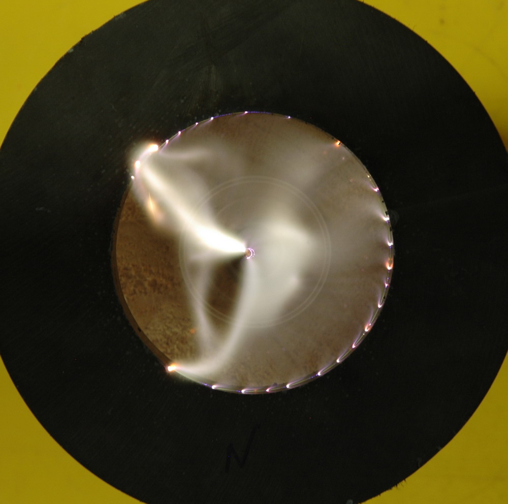 The left photo above shows the effect of a single electrode in the