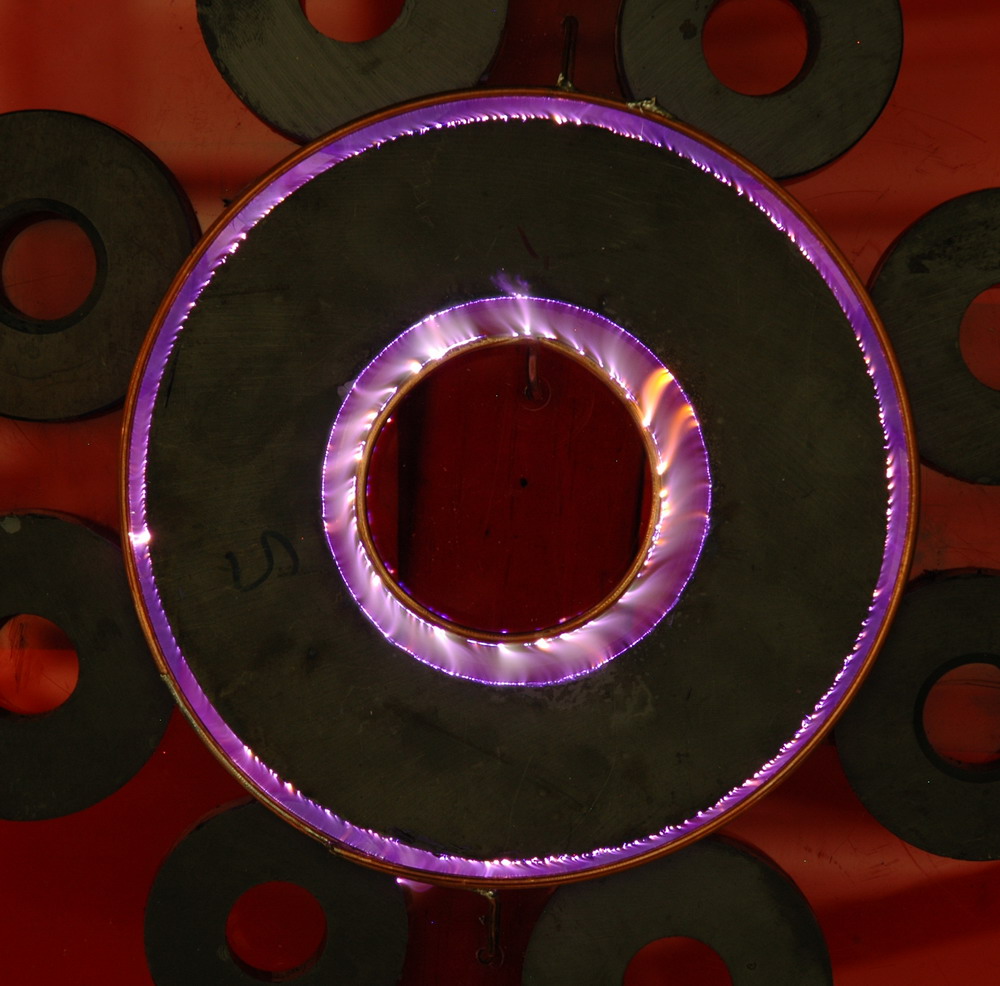 ferrite magnets from microwave oven magnetrons) a reasonable circular spark