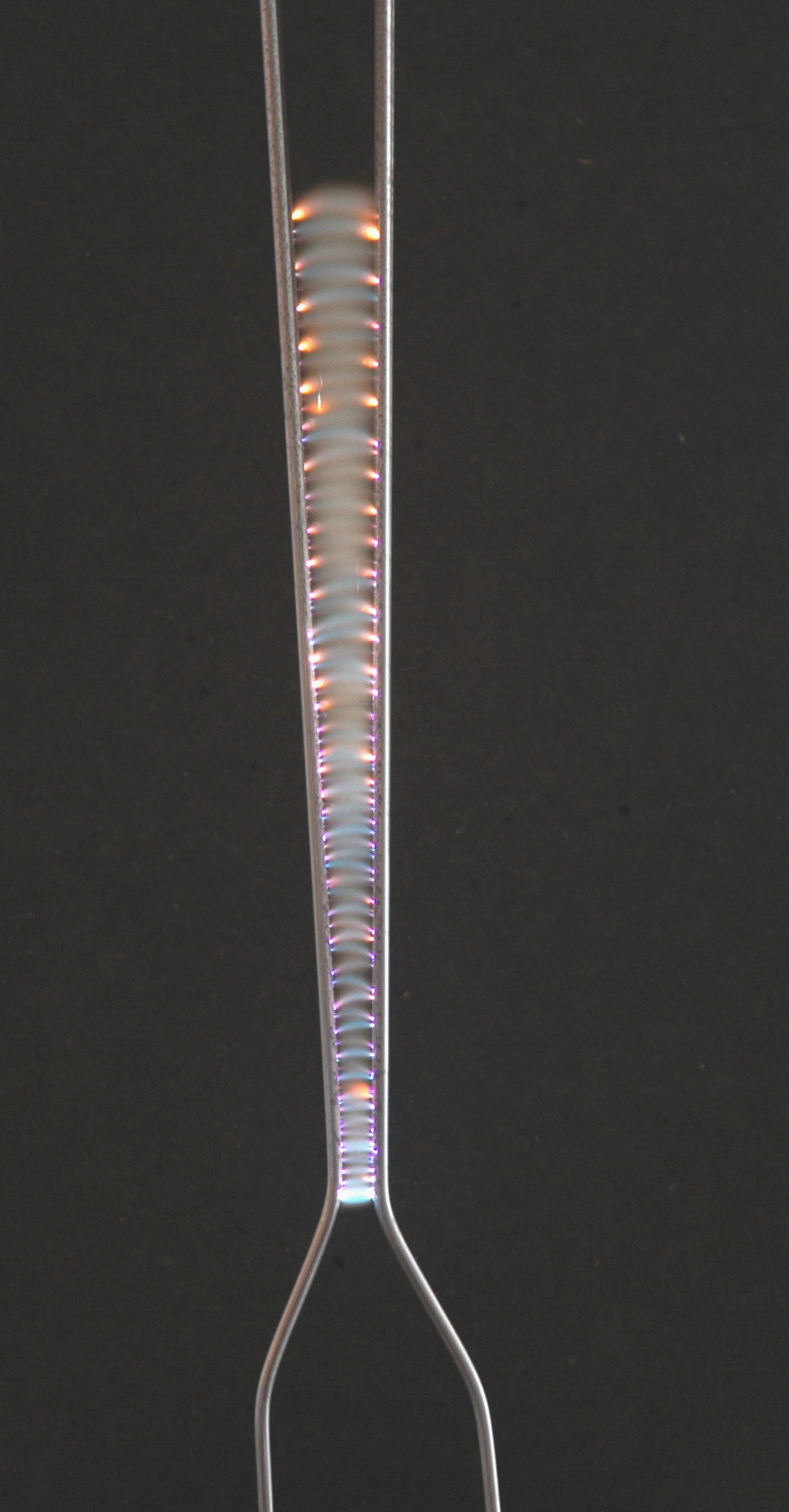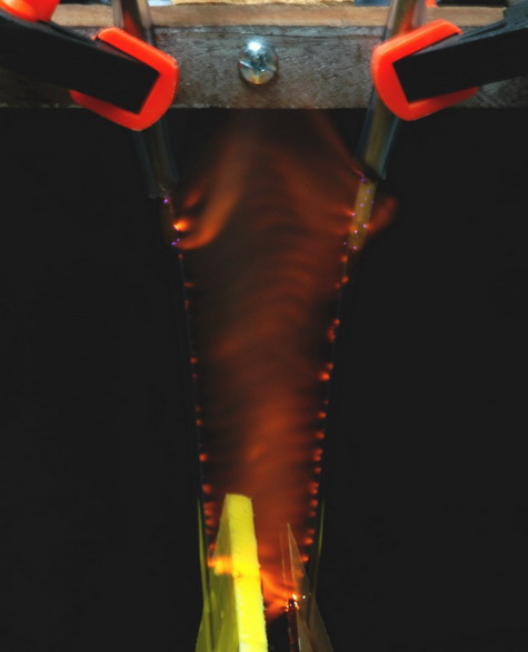 water it colors the flame much more strongly. The centre photo