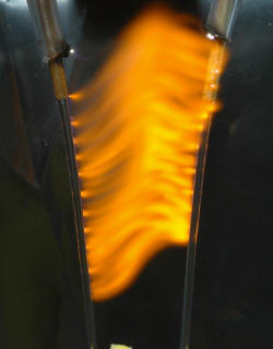 The arc will race around in circles and blur into a conical flame. The