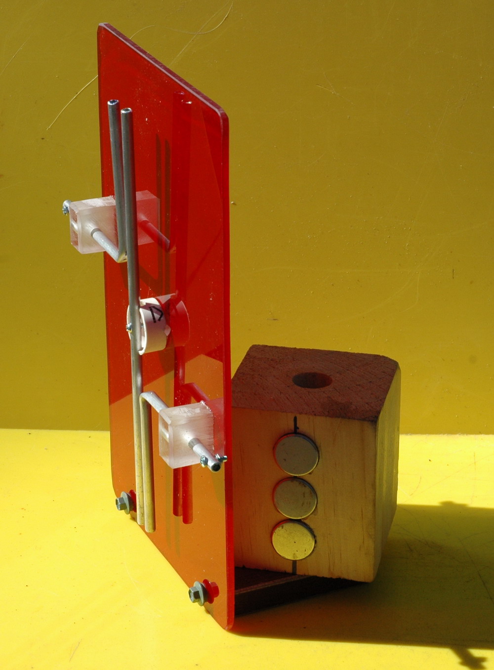 the North poles of three 1 inch NIB magnets just behind the red acrylic