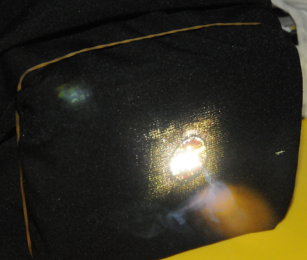 Well, I tried the obvious (above) - black cloth on the unfocussed output.