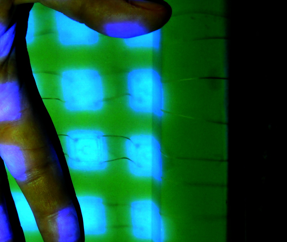 Three high intensity LEDs (red 8,000 mcd, blue 3,000 mcd, green 14,000 mcd) are flashed at different frequencies although the little battery doesn't handle the full rated power of the LEDs. It uses 3 x 555 IC's, 3 capacitors, 6 resistors, a microswitch and the battery.