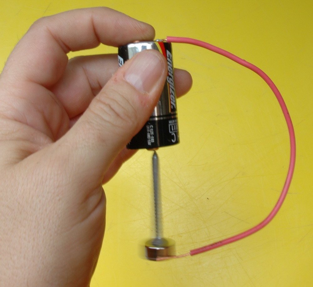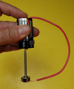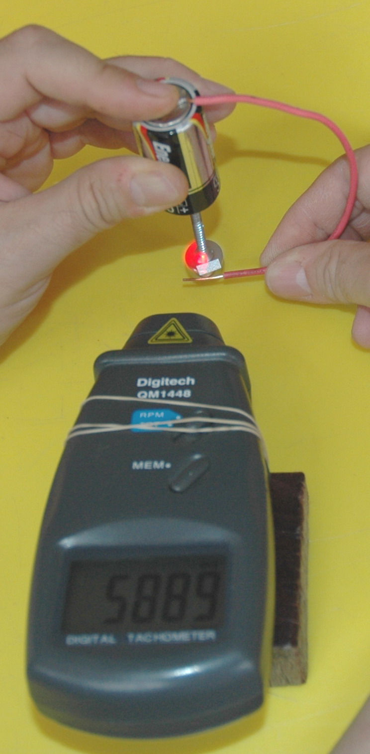 2006 The left photo shows the components of a screw, battery, wire and NIB magnet. The middle photo shows it running. The right photo shows the impressive 5889 RPM.