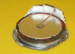 silicon disc with bonded metal on either side. |