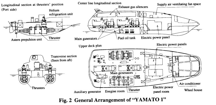 I have finally found the description of the Japanese MHD boat, the "Yamoto" made by Mitsubishi in the 1990's and weighing 185 tons which travelled at 15 km/h. It uses a superconducting 4 Tesla magnet, and the round cross section of the motor looks remarkably like mine but about 10 times the diameter (260mm). Electrodes are Titanium with anode coating of DSA (?) and the cathode plated with Platinum. The length of electrodes is 3.4 m. Fascinating article with lots of diagrams.