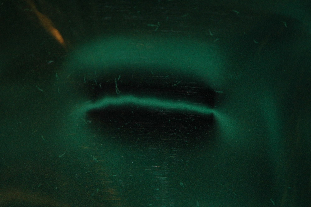 Above, left photo shows a simple and ancient bar magnet, presumably AlNiCo (Aluminium, Nickel, Cobalt)  The right photo shows the irregular field shown with magnetic viewing film.