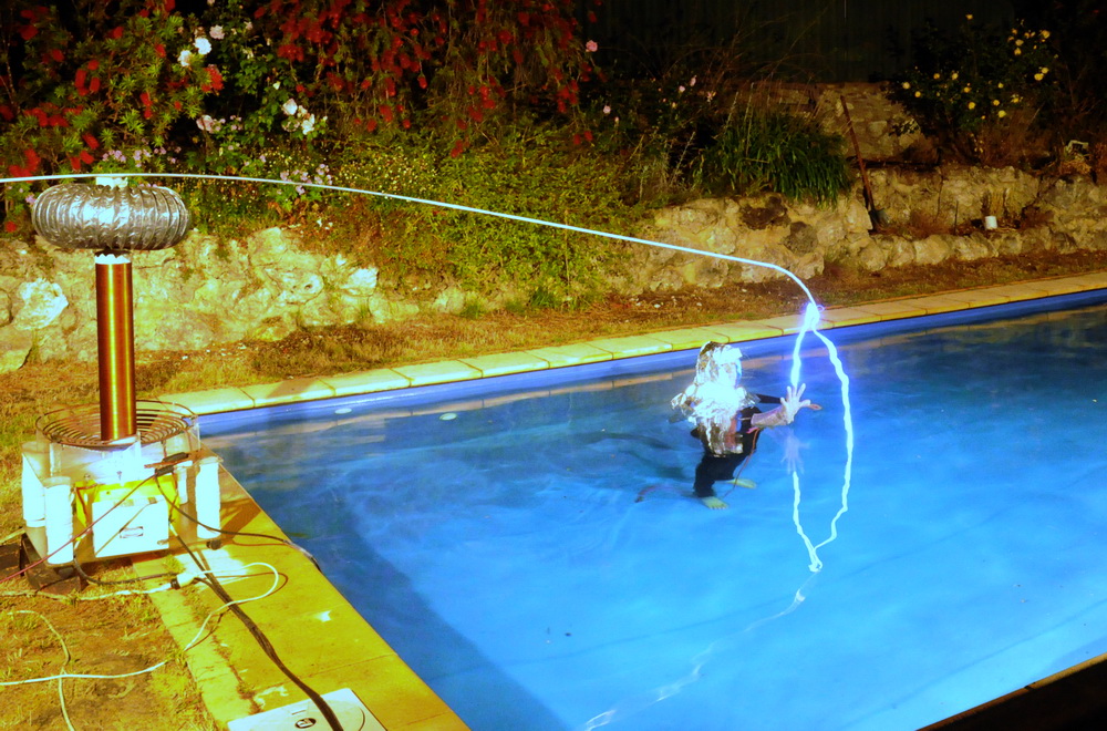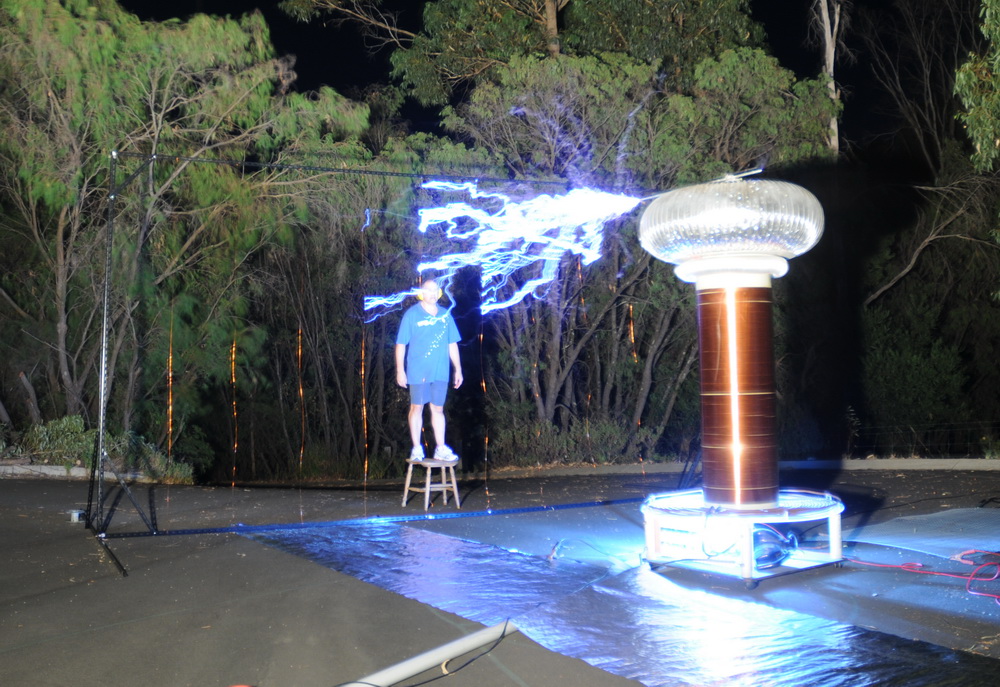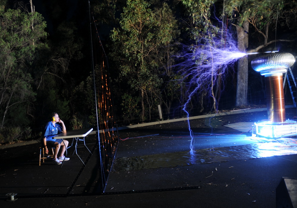 power, earthing, interference prevention and public liability. Firstly the music. An original soundtrack was done by my son, Michael Terren who is an 18yo pianist and composer studying at the West Australian Academy of Performing Arts. The music has a pounding industrial theme and runs for 2:17 mins. Resonant Air-Core Transformer (Australia's Got Talent) by Michael Terren Some of his other work is here.