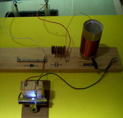 ceramics in series to give 550 pF. The spark gap with clips to hold