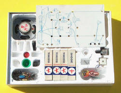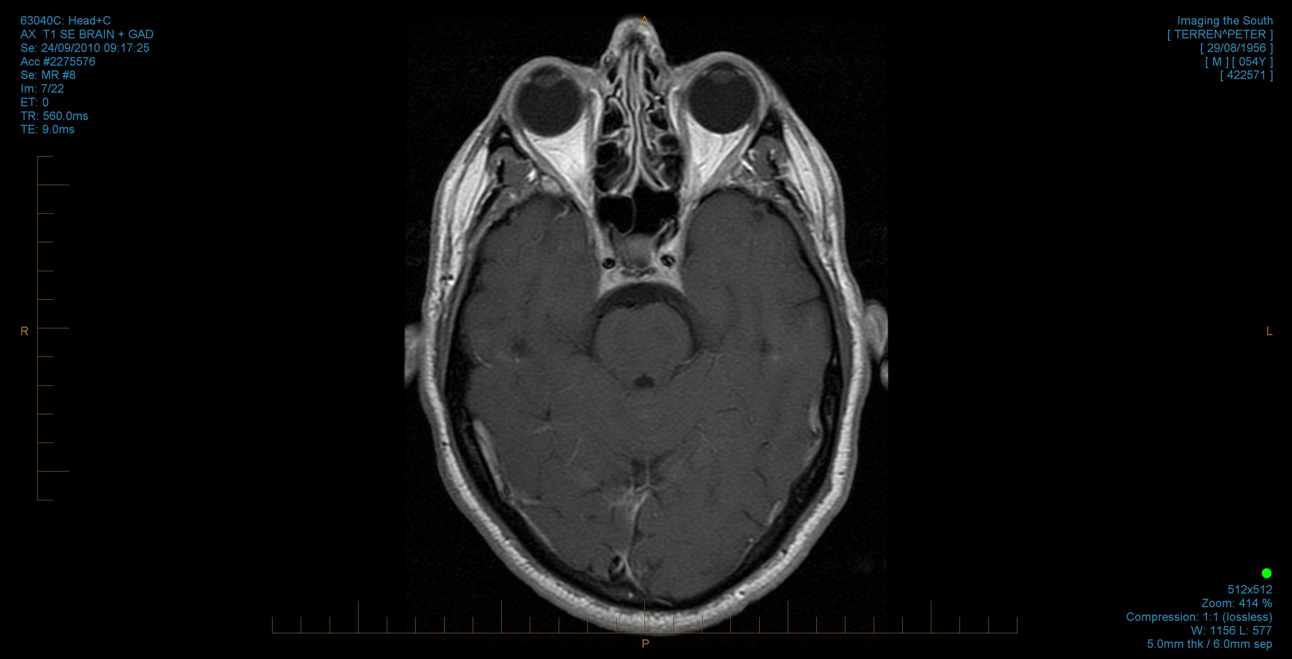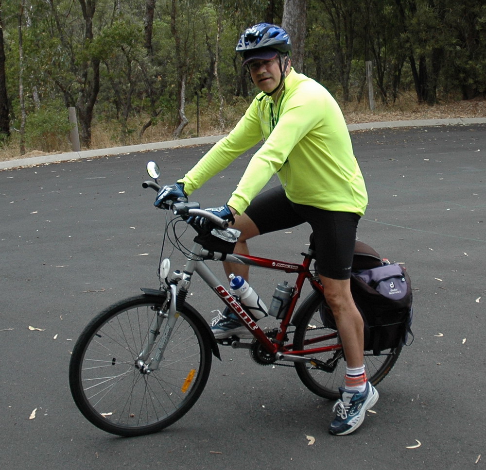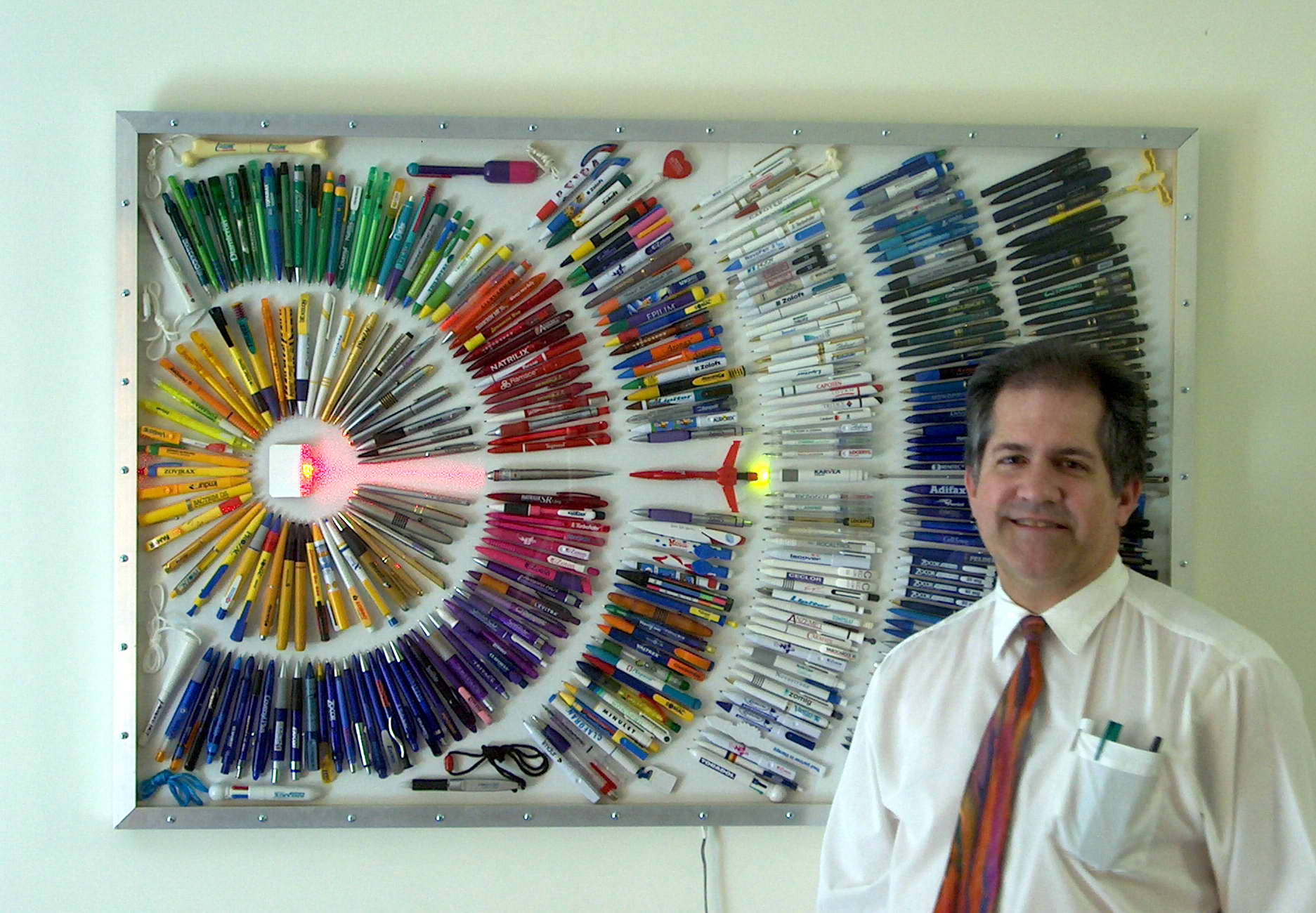 magical moment burned in my memory. This was my first electronics kit from the late 60's. Actually mine is long gone but this is the exact same one from eBay and a very sentimental find. I still remember many of the part numbers. From this I made my first electronic project, a portable radio, when I was 12. High voltage followed a few years later in the course of developing some science projects like this. High voltage 1972 style with twin ignition coils. I won Science Talent Search prizes in 1970, 71 and 72 Since then almost nothing happened for 25 years (a regret of mine) due largely to work and city living with no available shed. In the last 10 years I have had more time to pursue the holy art of electrickery. This has been aided considerably by the internet and sites including those in links. I currently live on the outskirts of a small coastal city in Western Australia on a one acre block. It is rural enough to have kangaroos coming up our drive occasionally and more importantly, neighbors are distant enough not to be bothered by noisy Tesla coils. My shed is below. 'A clean shed is a sign of a sick mind', I think someone said. (Actually the quotation was from Einstein "If a cluttered desk signs a cluttered mind, of what then is an empty desk a sign?".) When not working in the shed, I cycle (my best effort 340 km in 24 hours in April 2006). And I have a day job as well which mostly involves collecting pens (see below). This is 336 of my best pens collected over 10 years which I made into a display in August 2004 with a laser pen and LED light pen hardwired in the display. Two pens are the same - on either side of the airplane . It makes a bit of a change from watercolors for the office. It made the back cover of an Australian magazine and won me a case of wine. Look into my eyes.. deep into my eyes. (my retinal shots from my optometrist). The white disk is where the optic nerve comes into the back of the retina. The dark blurred area is the macula where your prime focus is and has the greatest discrimination. The retinal veins are the larger red vessels and the arteries are paler but thinner and follow roughly the same course. MRI scan (above) just to show that the eyes attach to something. Never mind that my left cerebral cortex is trying to shove the right out of the way. The Tower award from the Gravity Discovery Center for services to the GDS 2010. Here, illuminated by LEDs from my bike. And a straight shot for media.... And a poem by one of my patients, now 80 years old