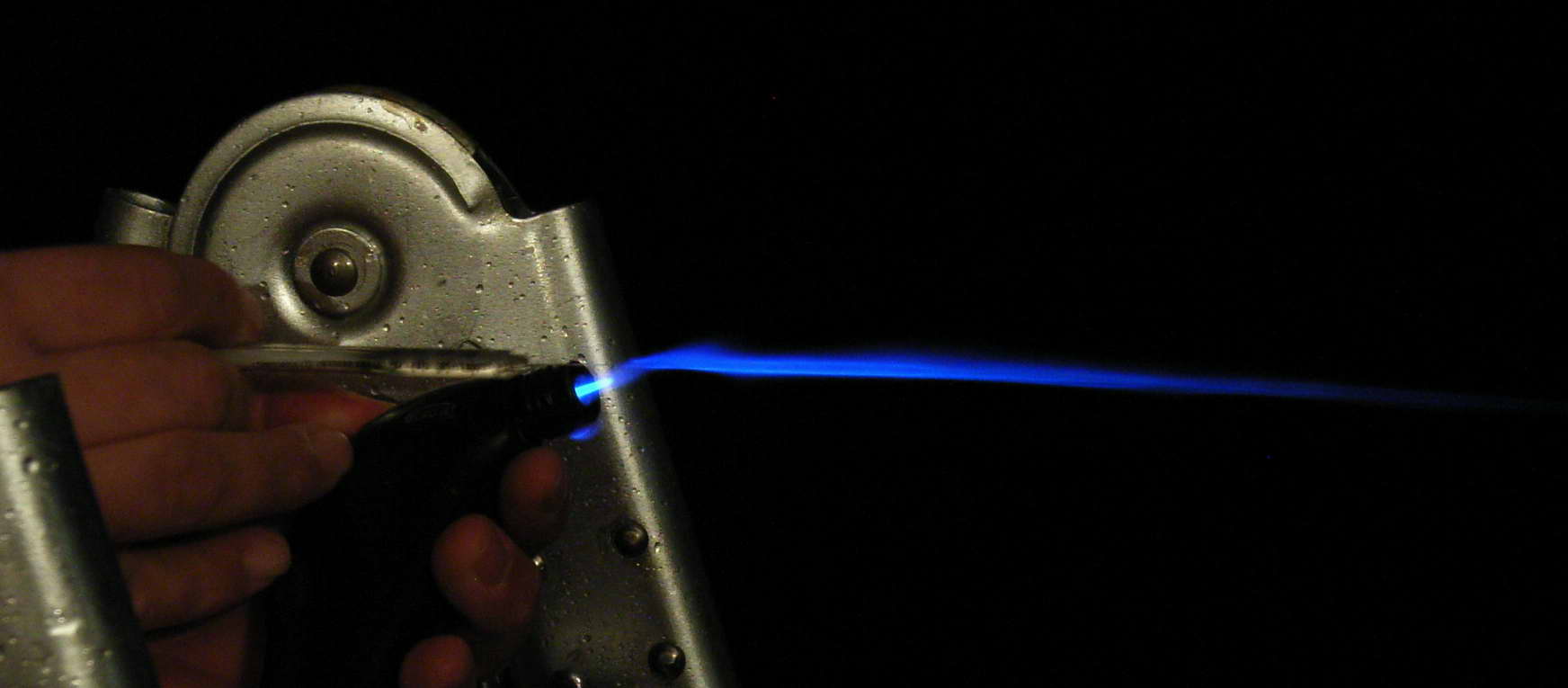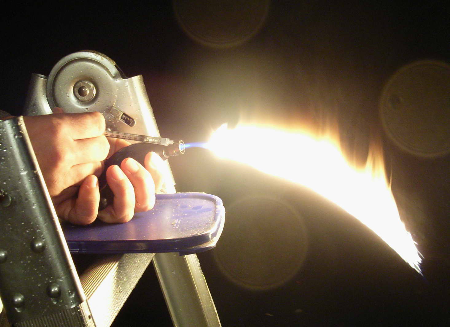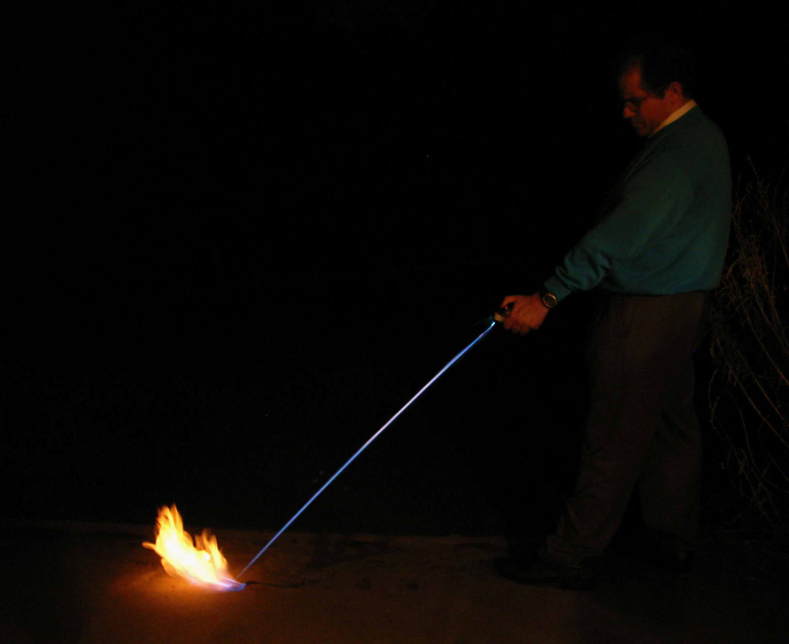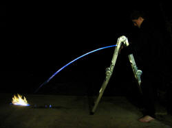 flame thrower. The pressure is relatively low coming from a 20 ml syringe and