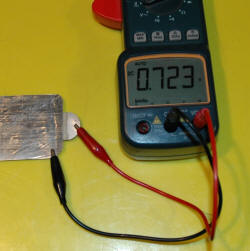 0.7 V when connected to some aluminum. Current at short circuit is 1mA.