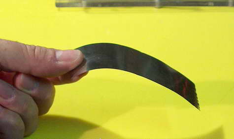 I have the 0.001 inch thick Titanium foil below. Strong stuff but fortunately can be cut with scissors.