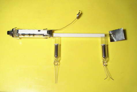 striations. The cold cathode unit is glass joined (the bulge) to the