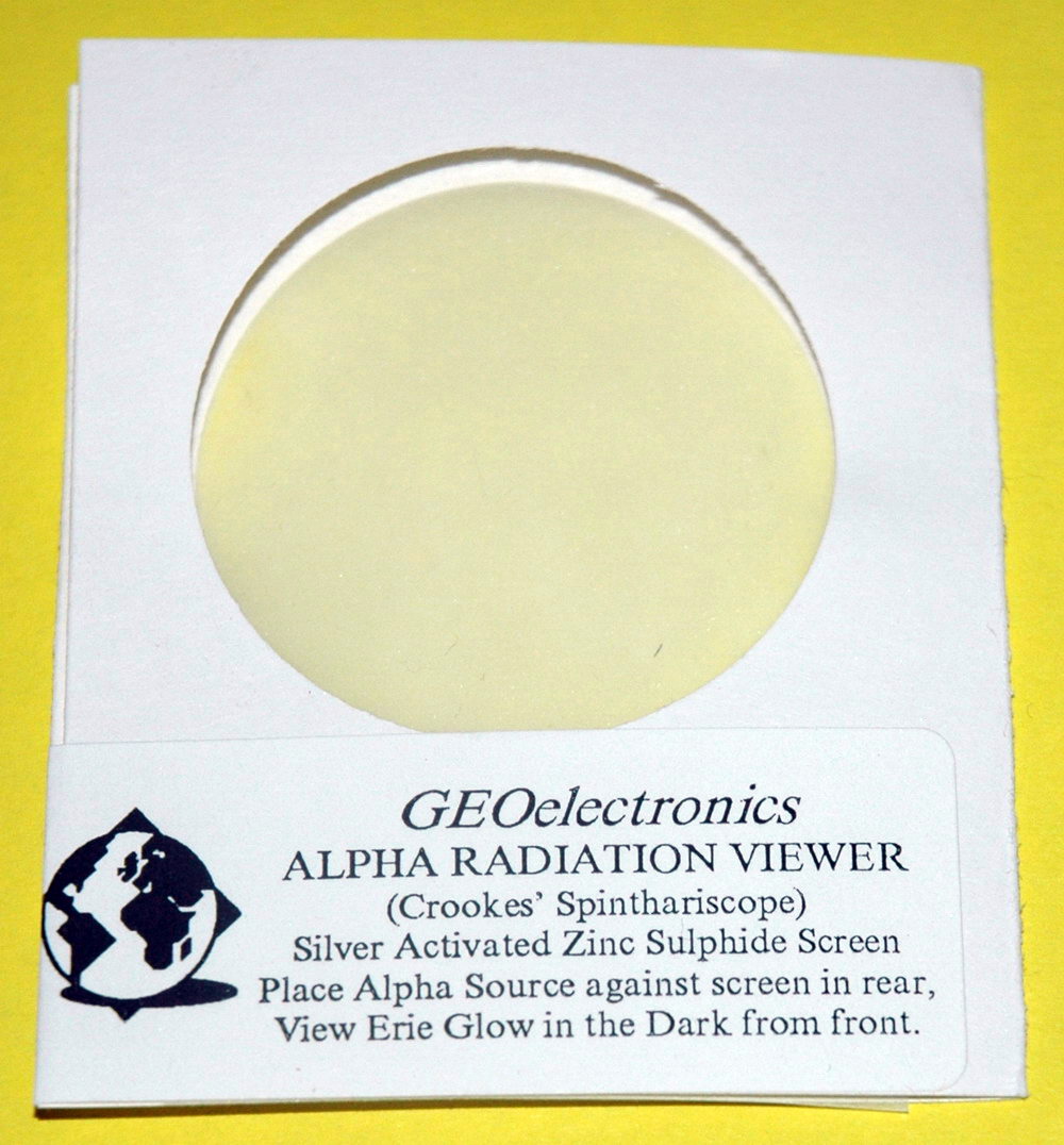 Spinthariscope 2005 For a quickie weekend project I made a spinthariscope. These date from the 1920's and are simply a phosphor screen, a radioactive source and a lens. What you see is very faint scintillations due to individual alpha particles striking the phosphor and giving a brief flash. In days gone by radium was used for the radioactive source.