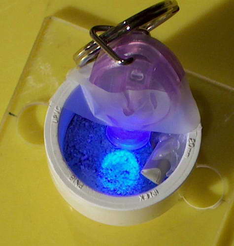 minute epoxy to fix it and it fluoresces white under a UV light (see the