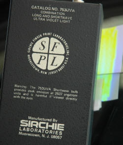 The left photo above shows my UV unit is a Model 753UVA from Sirchie